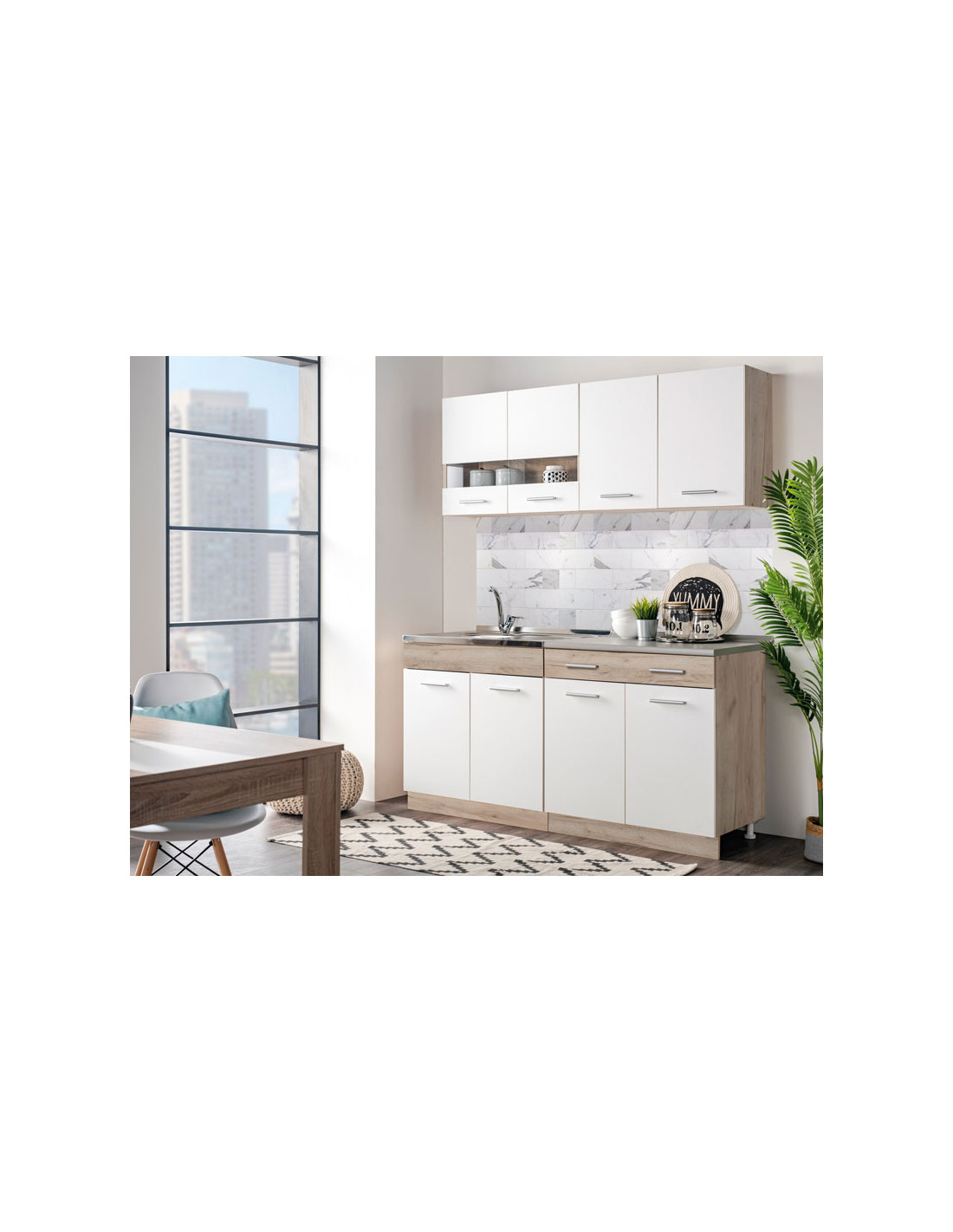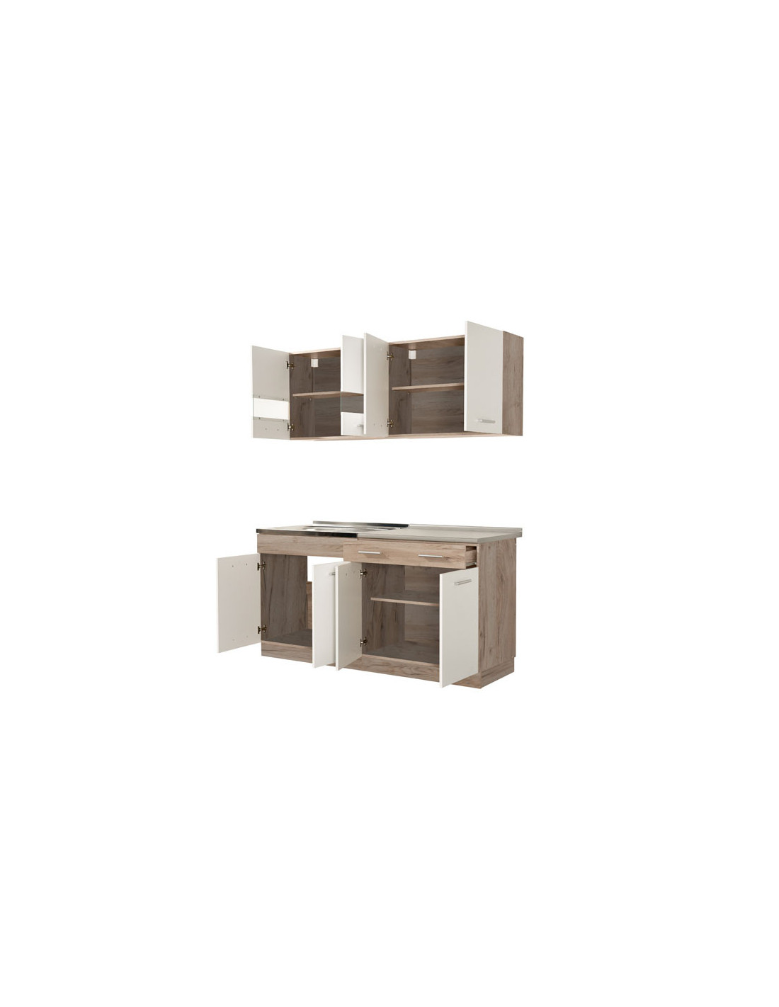 Kuhinja DALILA 160, u kombinaciji sivog i bijelog hrasta, idealan je izbor za opremanje prostora sa specifičnim dimenzionalnim zahtjevima. Svojim dizajnom koji je u skladu s trendovima uređenja interijera, učinit će prostor ugodnim i praktično organiziranim. Prilikom odabira ugradbenog sudopera za ovaj model kuhinje, potrebno je odabrati radnu ploču od 28 mm, kako bi sudoper i radna ploča bili u ravnini.