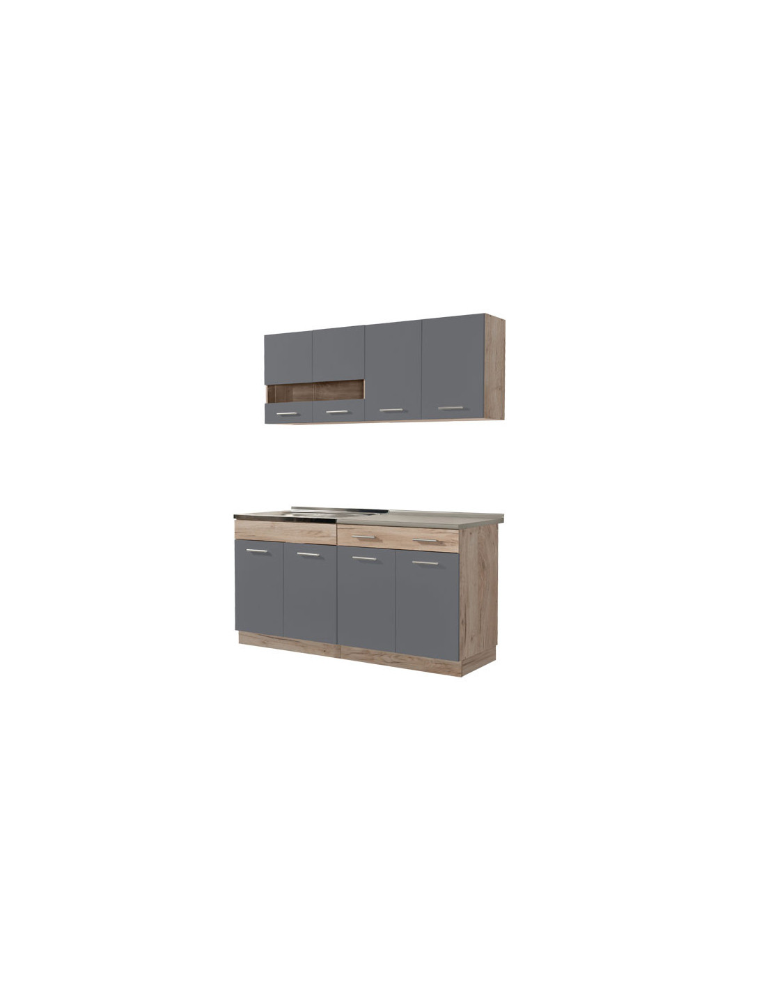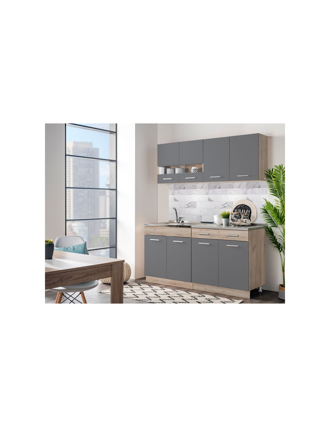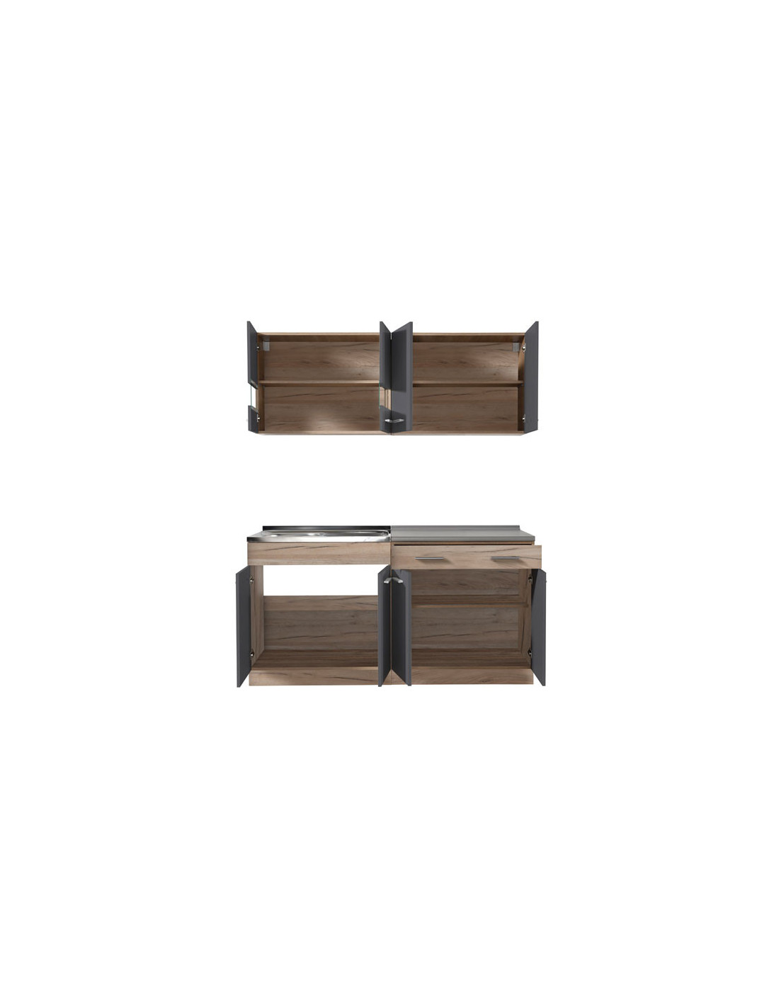 Kuhinja DALILA 160, u kombinaciji sivog hrasta i grafitno sive, idealan je izbor za opremanje prostora sa specifičnim dimenzionalnim zahtjevima. Svojim dizajnom koji je u skladu s trendovima uređenja interijera, učinit će prostor ugodnim i praktično organiziranim. Prilikom odabira ugradbenog sudopera za ovaj model kuhinje, potrebno je odabrati radnu ploču od 28 mm, kako bi sudoper i radna ploča bili u ravnini.