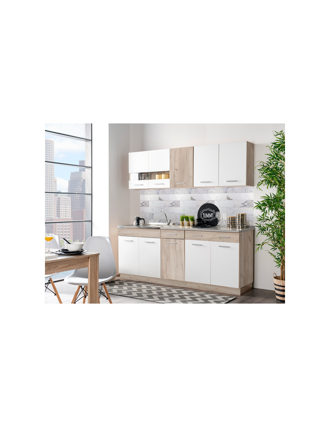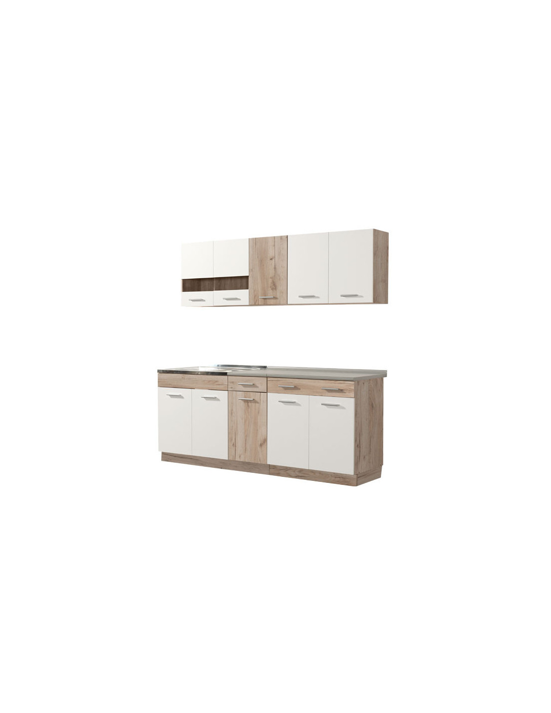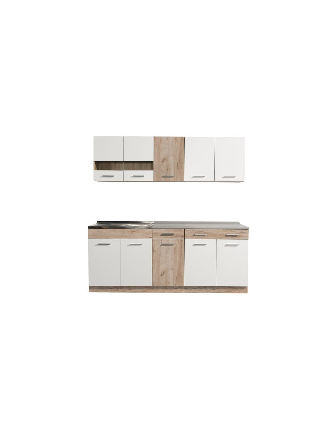 Kuhinja DALILA 160, u kombinaciji sivog i bijelog hrasta, idealan je izbor za opremanje prostora sa specifičnim dimenzionalnim zahtjevima. Svojim dizajnom koji je u skladu s trendovima uređenja interijera, učinit će prostor ugodnim i praktično organiziranim. Prilikom odabira ugradbenog sudopera za ovaj model kuhinje, potrebno je odabrati radnu ploču od 28 mm, kako bi sudoper i radna ploča bili u ravnini.
