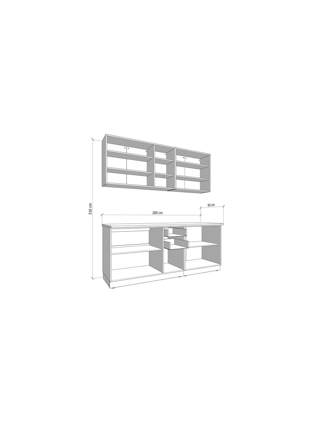 Š 200 cm / D 51 cm / V 200 cm