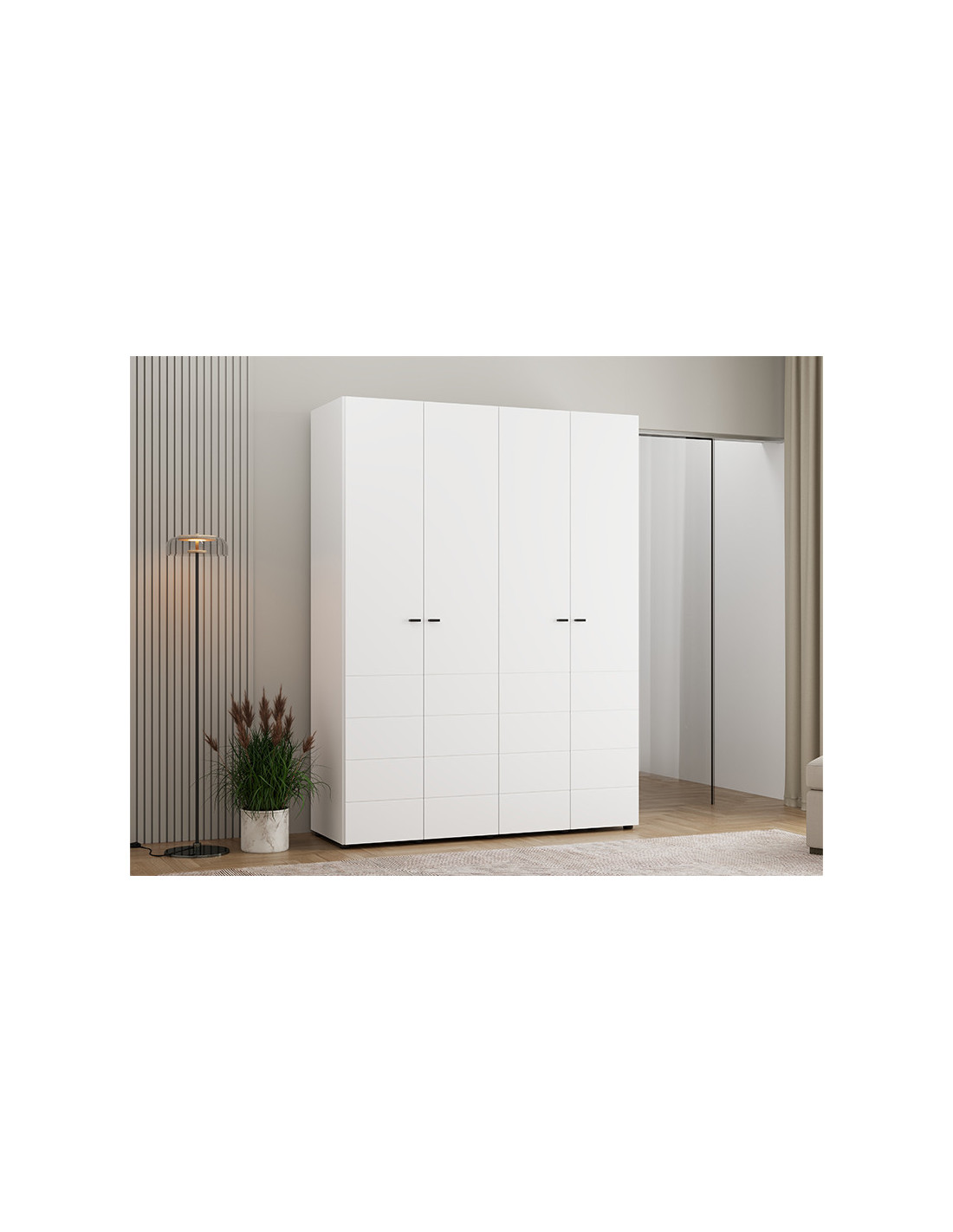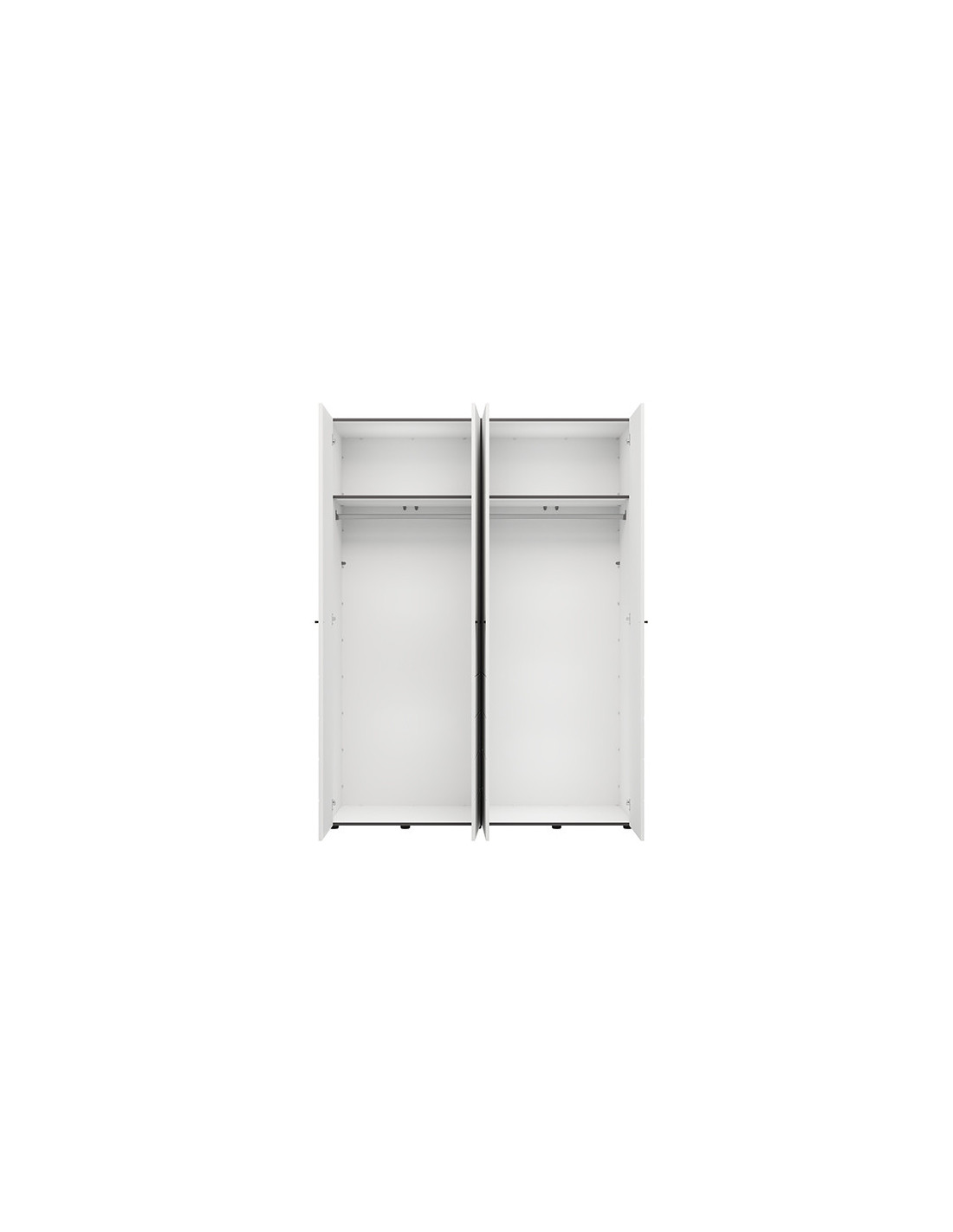 Ormar NEVIS 4K h207, u bijeloj boji, funkcionalno je i moderno rješenje za organizaciju vašeg ormara. Korisni prostor uključuje dvokrilni dio s vješalicom za odjeću i dvokrilni dio s policama, što omogućuje preglednu i praktičnu organizaciju odjeće i dodataka. Postoji mogućnost dodavanja seta polica za još učinkovitije korištenje unutarnjeg prostora.