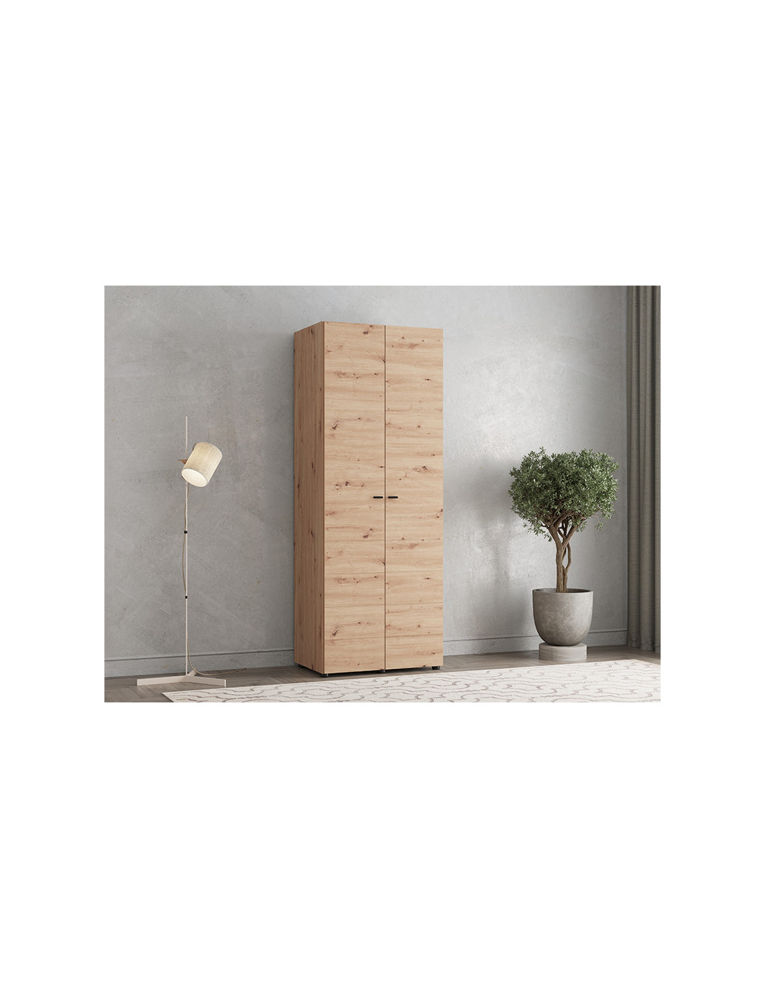 Ormar NEVIS 2K h207, u dekoru hrasta umjetničkog stila, praktično je i funkcionalno rješenje za pohranu odjeće. Opremljen je iskoristivim prostorom s vješalicom za odjeću, što omogućuje urednu organizaciju odjeće. Jednostavan i moderan dizajn čini ovaj model lakim za uklapanje u različite interijere. Pripada kolekciji NEVIS i može se kombinirati s drugim modelima iz iste linije.