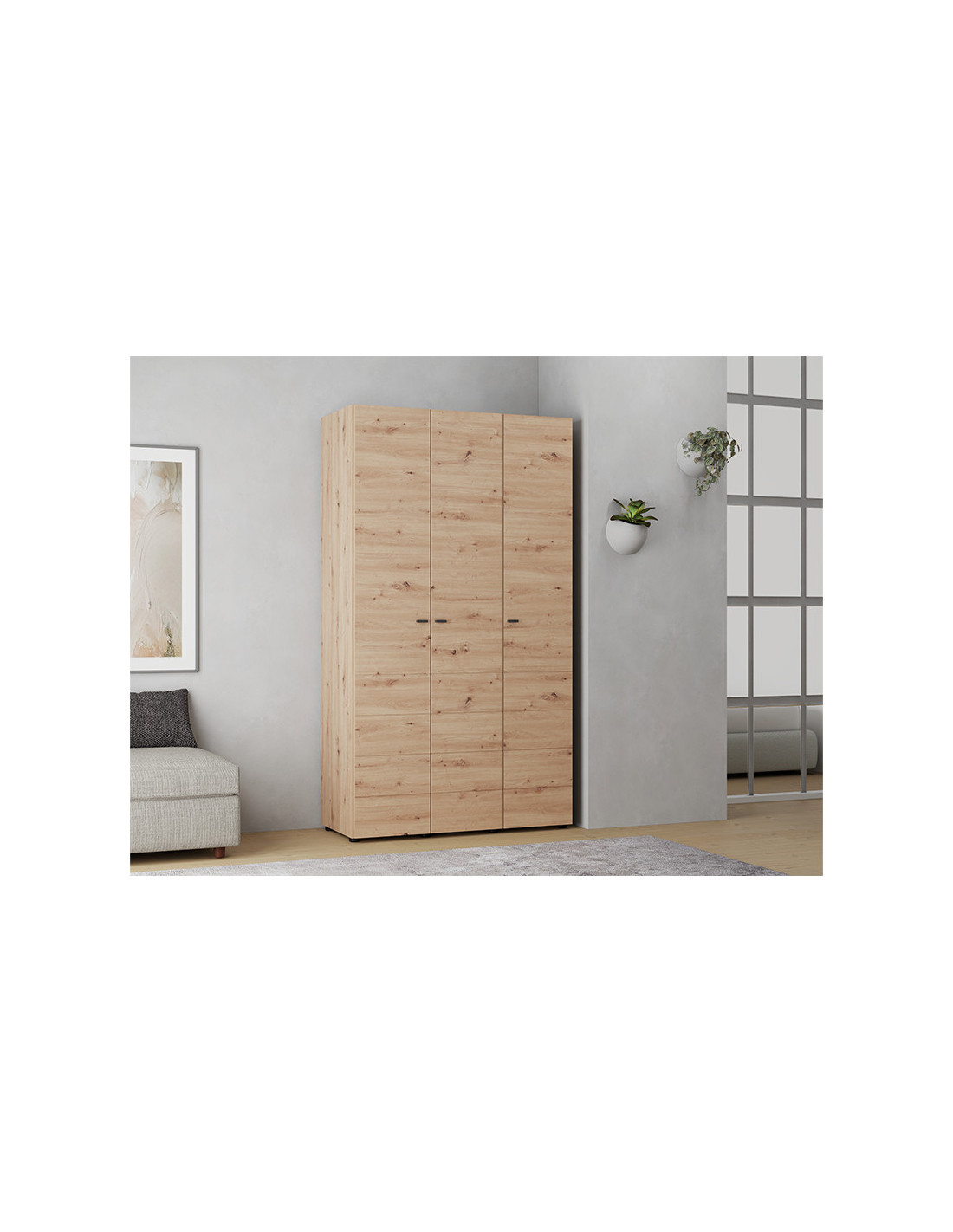 Ormar NEVIS 3K h207, u boji hrasta, funkcionalno je rješenje za pohranu odjeće. Ormar NEVIS 3K h207 sastoji se od dvokrilnog dijela s vješalicom za odjeću i jednokrilnog dijela s policama, što omogućuje preglednu organizaciju odjeće i dodataka. Postoji mogućnost nadopune unutrašnjosti dodatnim setom polica.