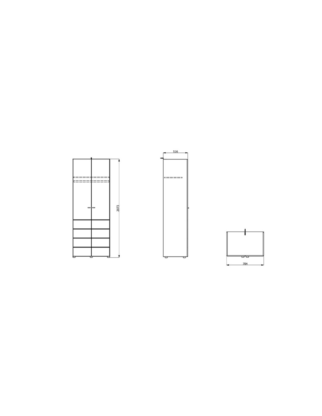 Š 78,5 cm / D 51,5 cm / V 207,5 cm