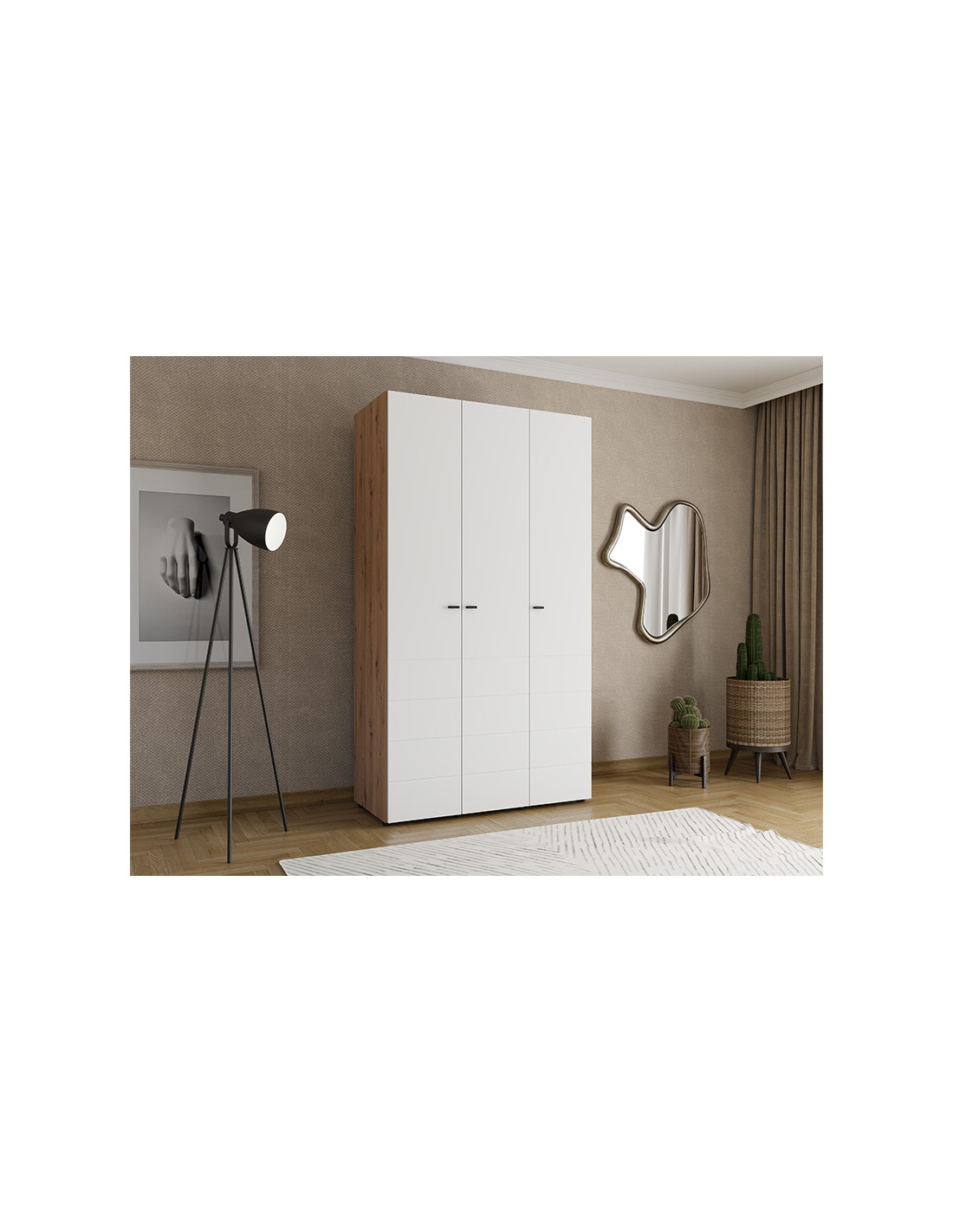 Ormar NEVIS 3K h207, u upečatljivom bijelom dekoru, funkcionalno je rješenje za pohranu odjeće. Ormar NEVIS 3K h207 sastoji se od dvokrilnog dijela s vješalicom za odjeću i jednokrilnog dijela s policama, što omogućuje preglednu organizaciju odjeće i dodataka. Postoji mogućnost nadopune unutrašnjosti dodatnim setom polica. Ormar pripada kolekciji NEVIS i može se kombinirati s drugim modelima iz iste linije.