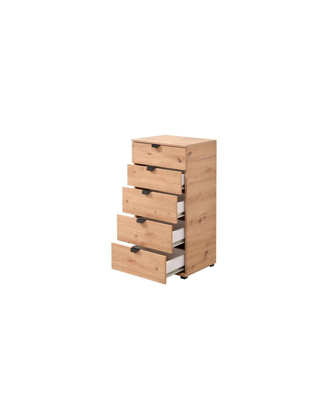 Komoda DUERO 5F 45, u artisan hrast dekoru dizajniran je tako da, prema svojim dimenzijama širine, 45 cm, ne zauzima puno prostora, a zahvaljujući korisnom prostoru koji pruža pet ladica, jedan je od elemenata s velikom korisnom vrijednosti. Komoda DUERO 5F 45 pogodan je za opremanje ulaznog hodnika, dnevnog boravka ili spavaće sobe.