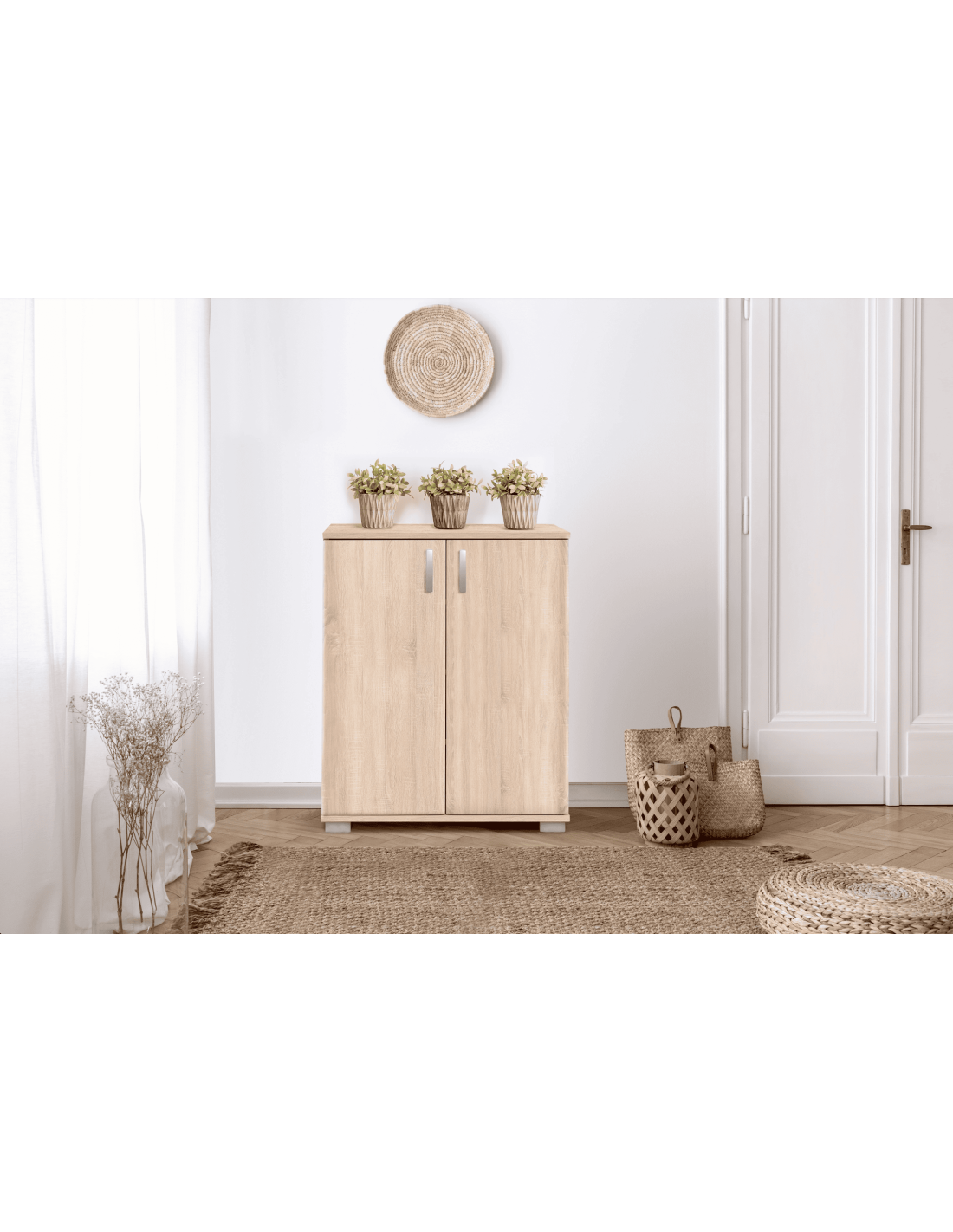 Komoda ROMA 1 pravi je funkcionalni odgovor na sve zahtjeve za dodatnim skladišnim prostorom za razne stvari. Komoda Roma je vrlo prostrana, skladišni prostor je podijeljen s 3 police poprečnog presjeka. Zahvaljujući modernom dizajnu, može se koristiti u vašem kućnom uredu ili drugim objektima.