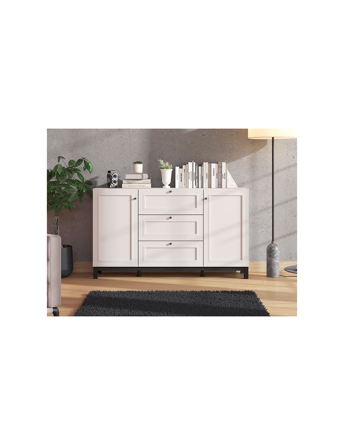 Komoda SAVOIA 3K3F u kombinaciji kašmir dekora i kašmir folije odlikuje se karakteristikama moderne klasike. Karakterizira ga funkcionalno raspoređen korisni prostor koji se sastoji od dvije zatvorene pregrade i tri praktične ladice. Dio je SAVOIA sustava opremanja dnevnih soba koji zadovoljava svakodnevne životne i ambijentalne potrebe.