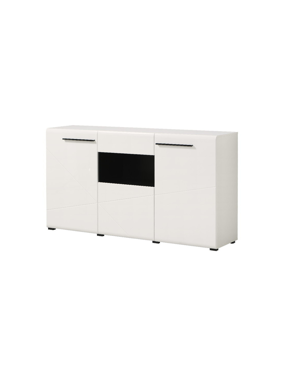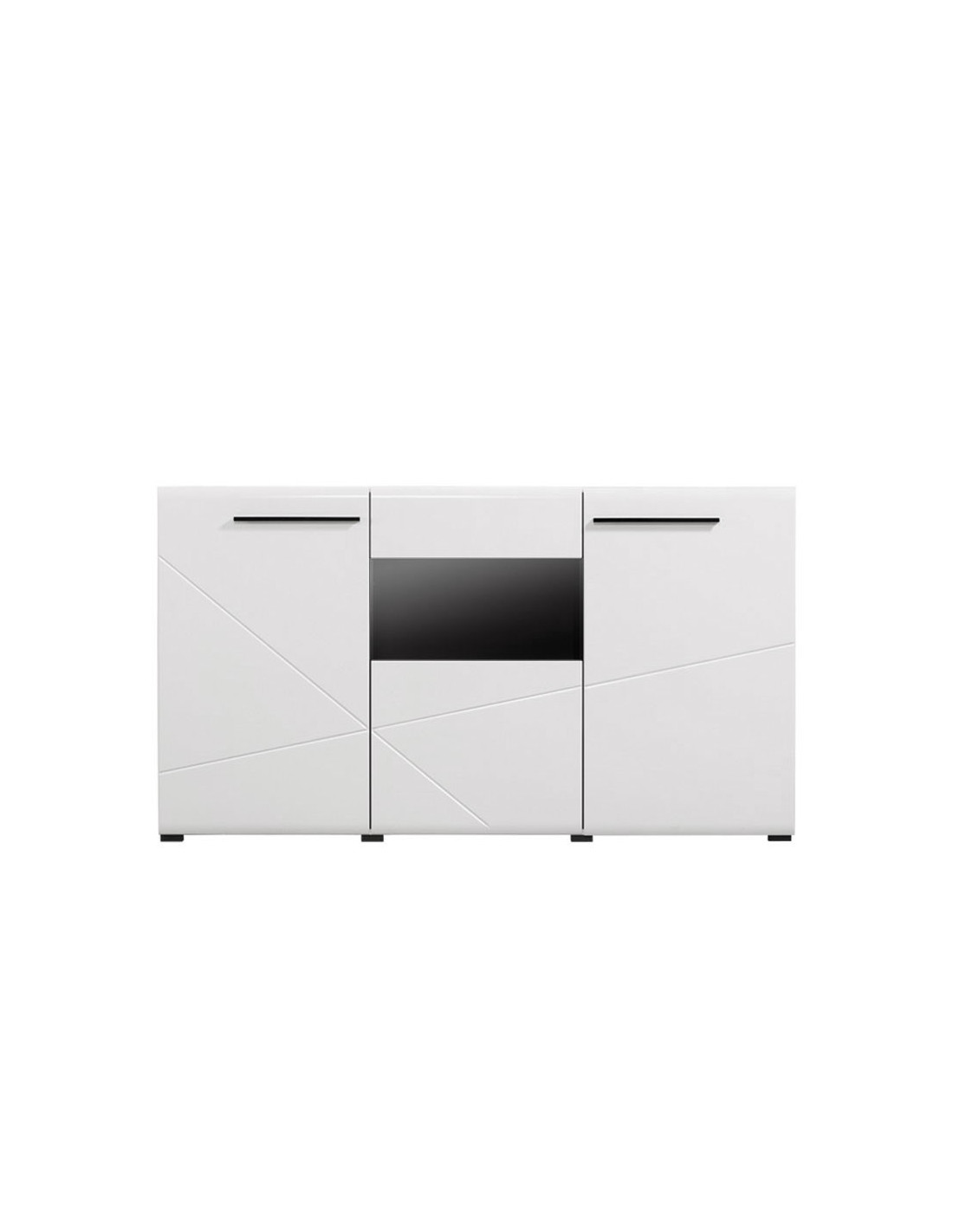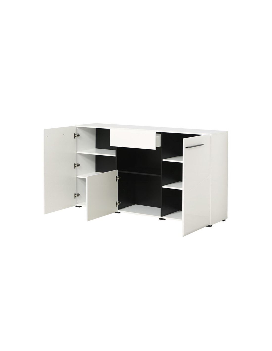 Komoda TRENTINO 3K1F, u kombinaciji bijele i crne boje s frontama presvučenim bijelom lak folijom, dio je TRENTINO sustava elemenata čiji dizajn i funkcionalnost doprinose praktičnim i estetski autentičnim rješenjima uređenja interijera. Sastoji se od tri zatvorena dijela s unutarnjim pregradama i jedne ladice.