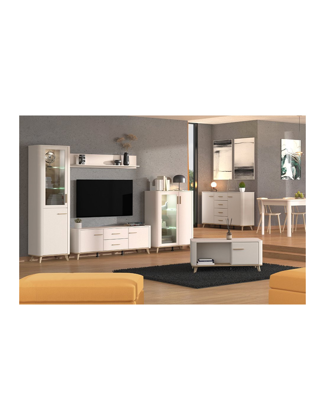 Komoda DARWEN 180 4K1F4V u kombinaciji dekora kašmira, dekora artisan hrasta i mat folije kašmira atraktivno je rješenje za sve ljubitelje modernog uređenja interijera. Idealan je izbor za uređenje dnevnog boravka. Korisni prostor sastoji se od četiri zatvorene pregrade i jedne prostrane ladice. Dio je DARWEN element sustava za opremanje dnevnog boravka, koji ispunjava svakodnevne životne i ambijentalne potrebe.