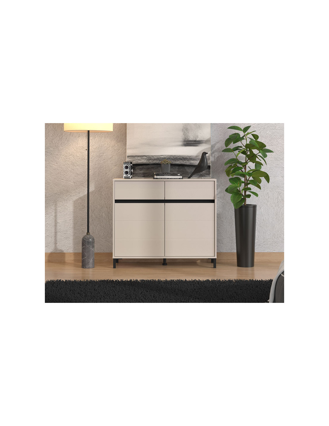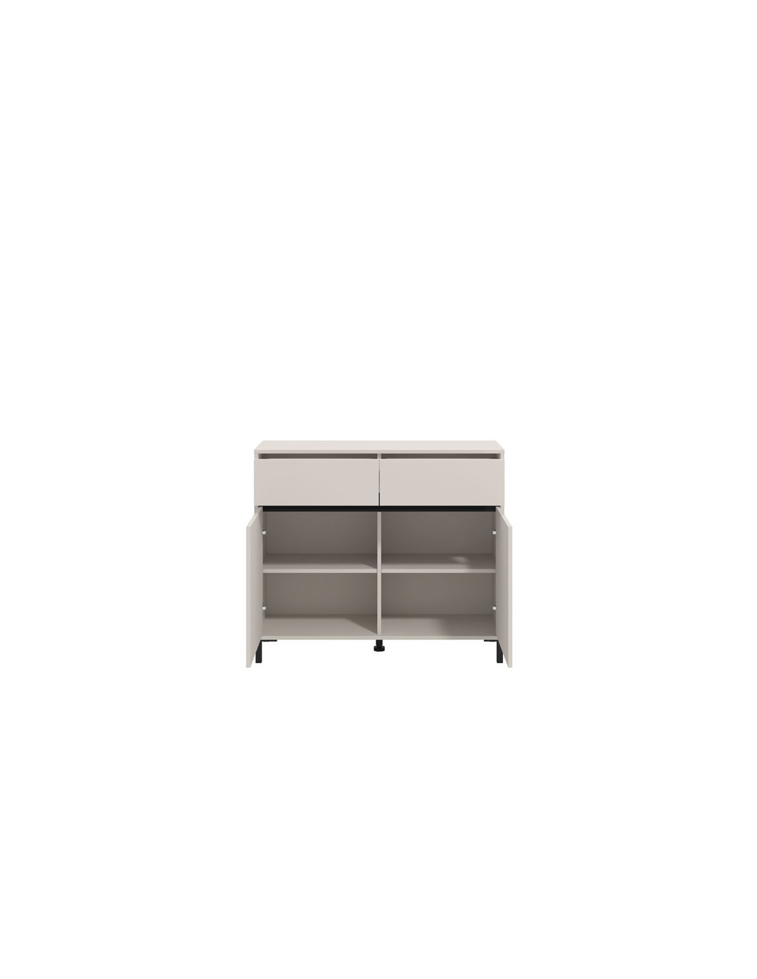 Komoda MARRON 106 2K2F2V u kombinaciji kašmir dekora i crne mat folije funkcionalan je komad namještaja koji je potreban svakom ambijentu doma. Odlično raspoređen upotrebni prostor ove komode čine dva zatvorena pregradna djela i dvije praktične ladice.