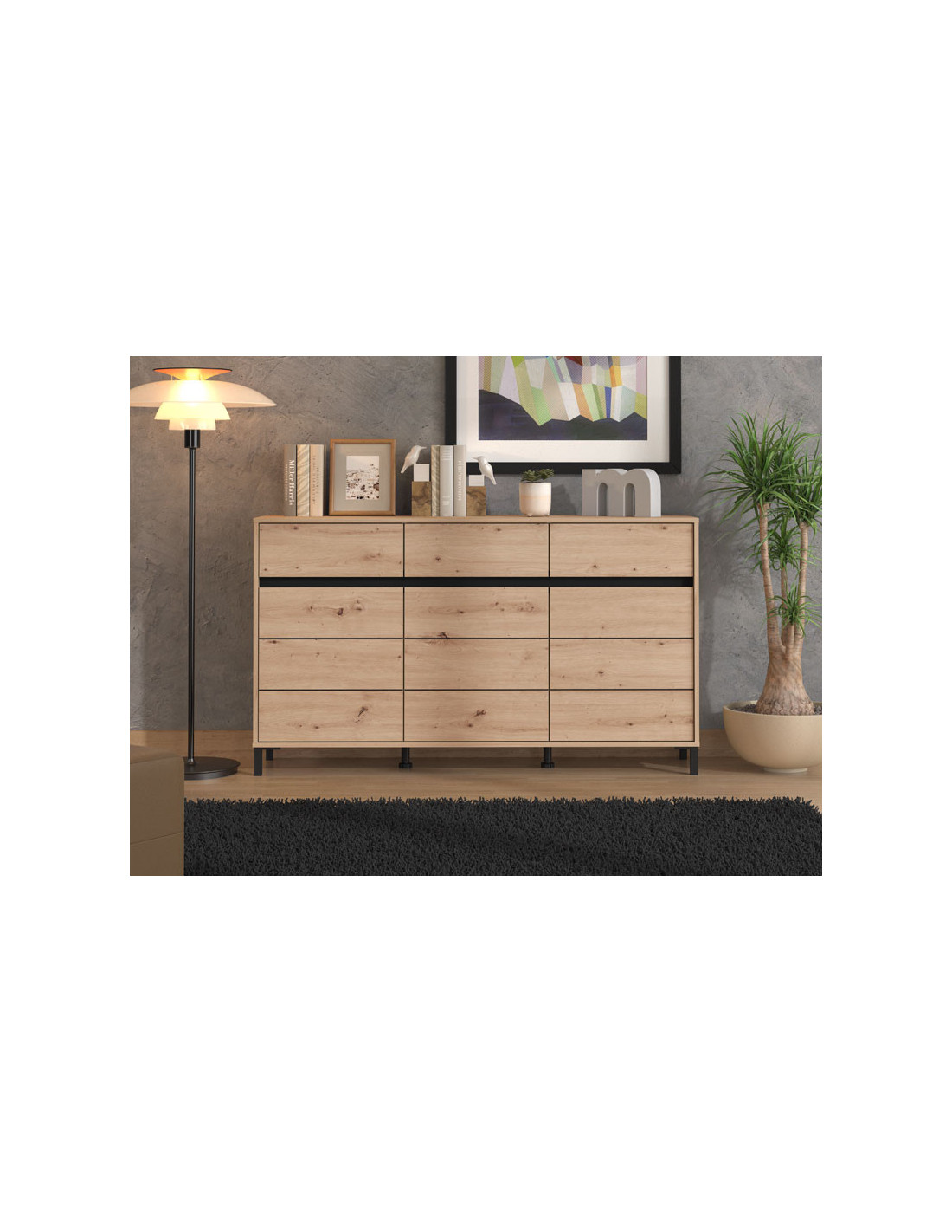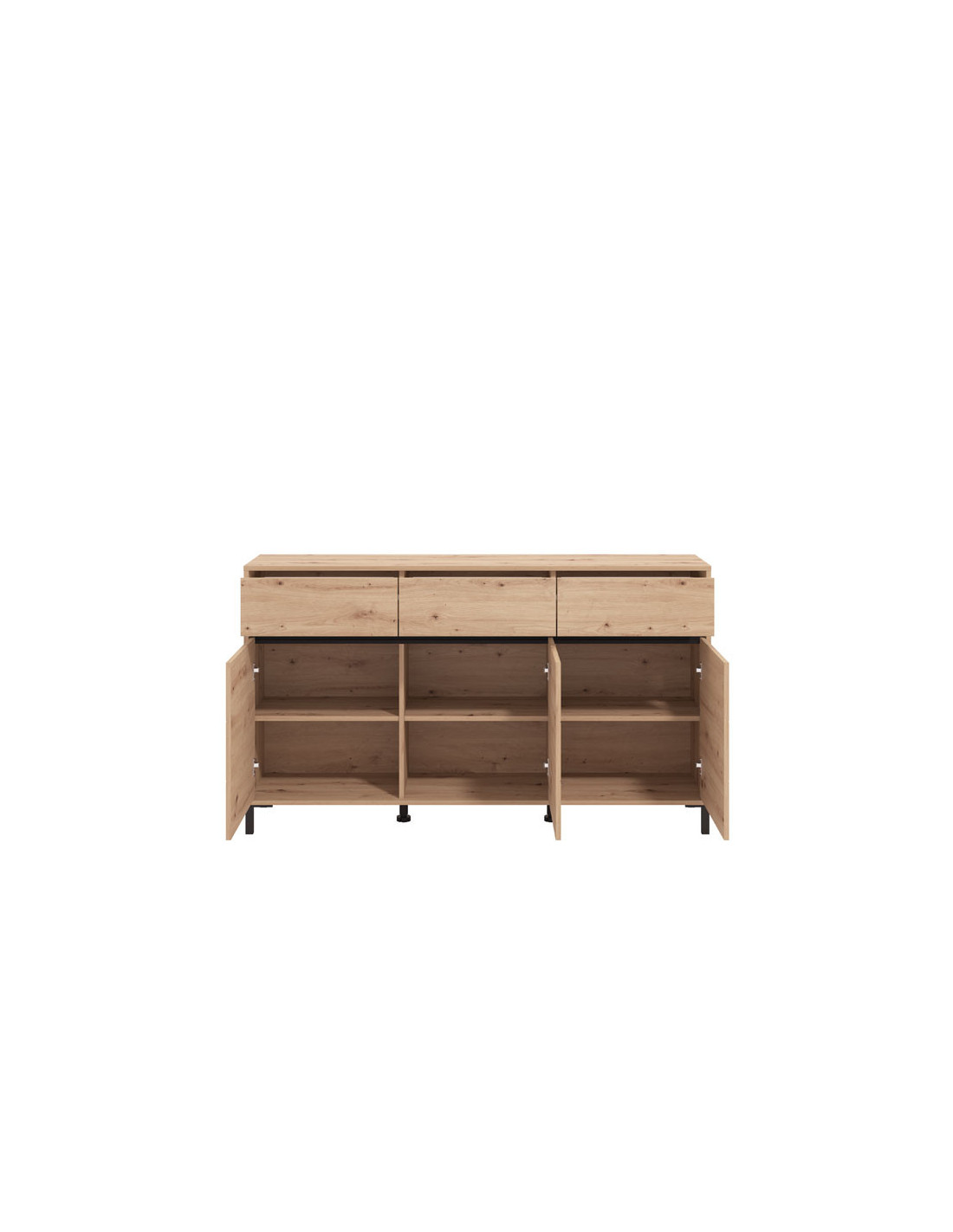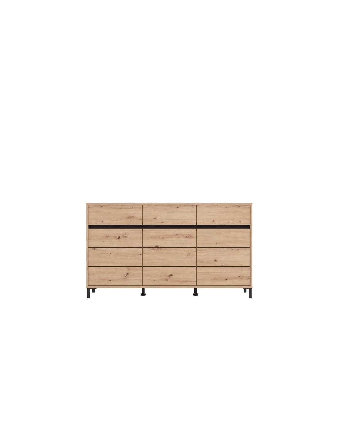Komoda MARRON 157 3K3F3V u kombinaciji artisan hrastovog dekora sa crnom mat folijom, funkcionalan je komad namještaja koji je potreban svakom ambijentu doma.
