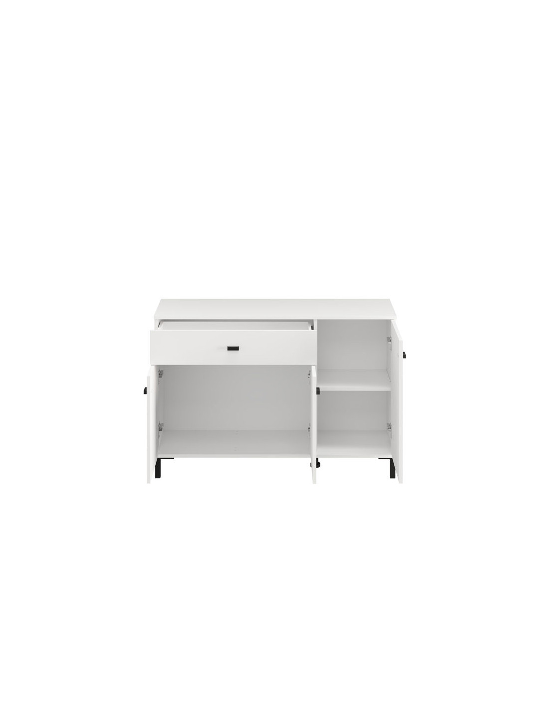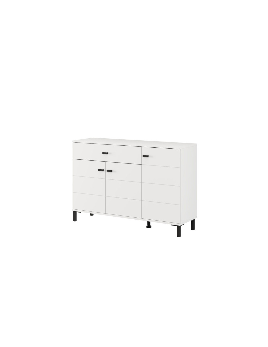 Komoda SALAMIS 115 3K1F3V, izrađena u bijeloj boji, doprinosi mirnom i modernom izgledu spavaće sobe, a istovremeno pruža pregledan i funkcionalan prostor za pohranu.