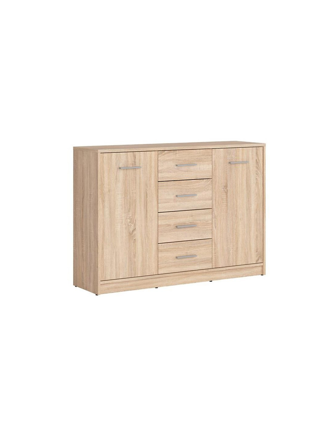 Komoda s četiri klizne ladice i dvoja vrata omogućuje skladištenje raznovrsnih stvari. Elementi ladica su sa sistemom blokiranja za lakšu uporabu. Prostrana unutrašnjost i moderan dizajn ove komode univerzalne veličine, povećava funkcionalnost i privlačnost sobe u kojoj se nalazi.