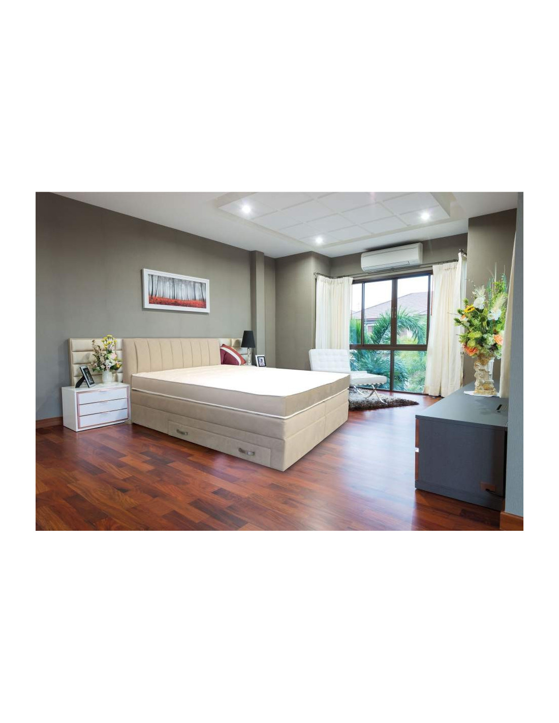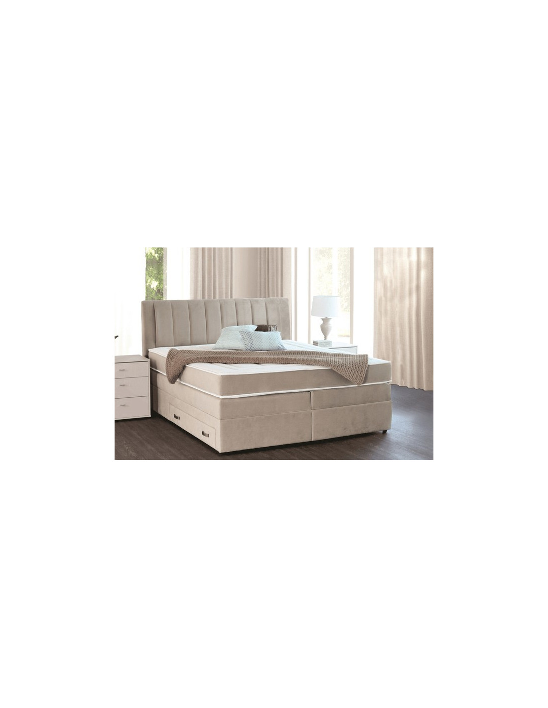 Uz Rose box spring krevet, mirni snovi su zagarantirani! Izrađen od masivnog drva s Bonnell jezgrom od 14 cm, obložen plohama od PU pjene i HR Hipersoft pjene, ispunit će snove i najnemirnijim spavačima. Krevet ima 2 velike ladice.