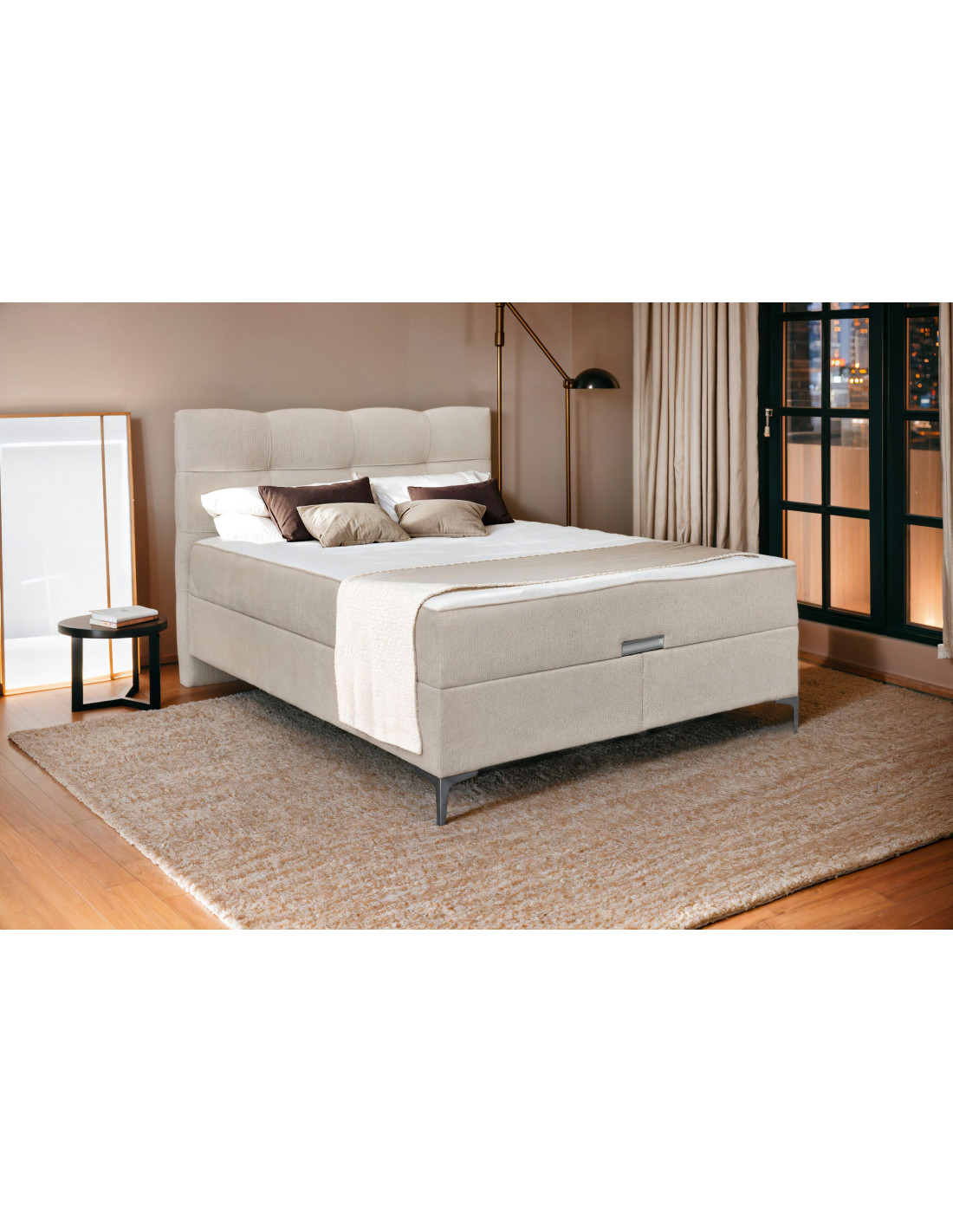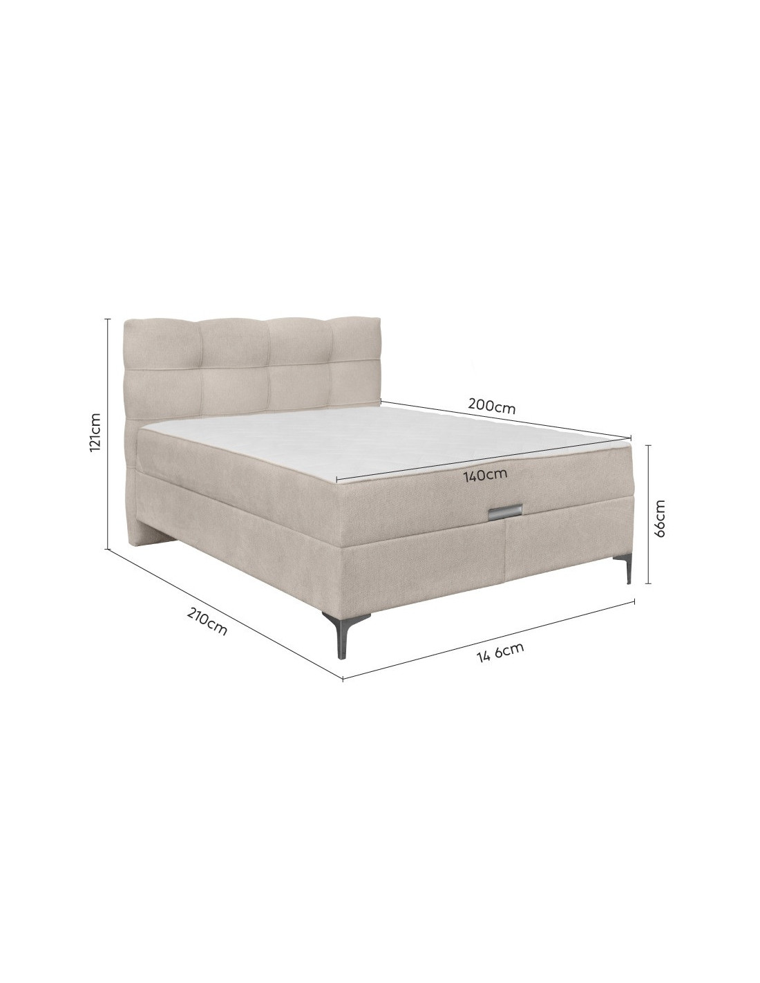 Francuski krevet Corleone New savršena je kombinacija luksuznog i suvremenog dizajna. Elegantni dizajn ovog kreveta učinit će vašu spavaću sobu luksuznom i modernom. Punjenje madraca izrađeno je od džepićaste jezgre, što znači da se svaka opruga nalazi u zasebnom džepu i tako reagira na opterećenje neovisno o ostalima. Ova tehnologija pruža izniman ortopedski učinak i dobru ventilaciju. Prostor za pohranu ispod madraca omogućuje pohranu posteljine ili drugih stvari potrebnih za spavanje na mjestu gdje su lako dostupne, bez zauzimanja dodatnog prostora u sobi.