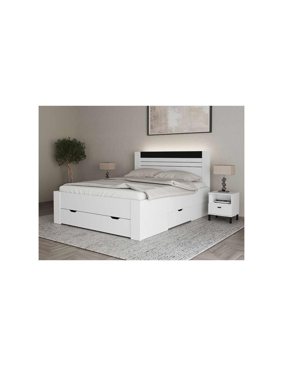 Bračni krevet BITINIA 160, izrađen u kombinaciji bijele i crne boje, doprinosi toplom i modernom izgledu spavaće sobe, pružajući stabilnu i funkcionalnu podlogu za odmor.