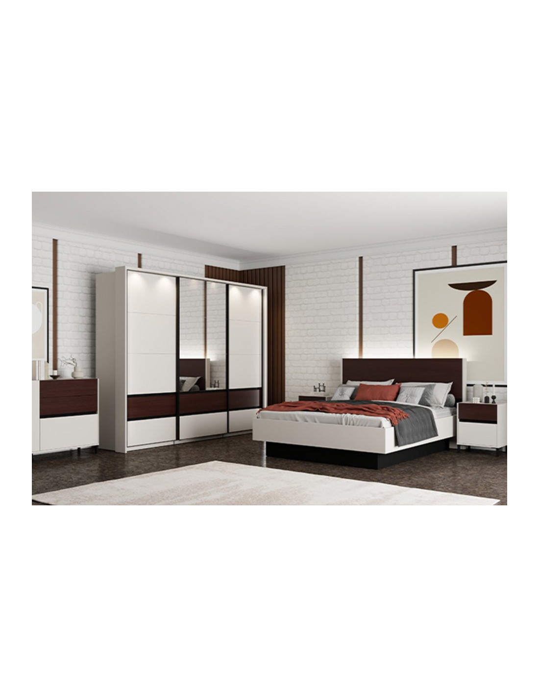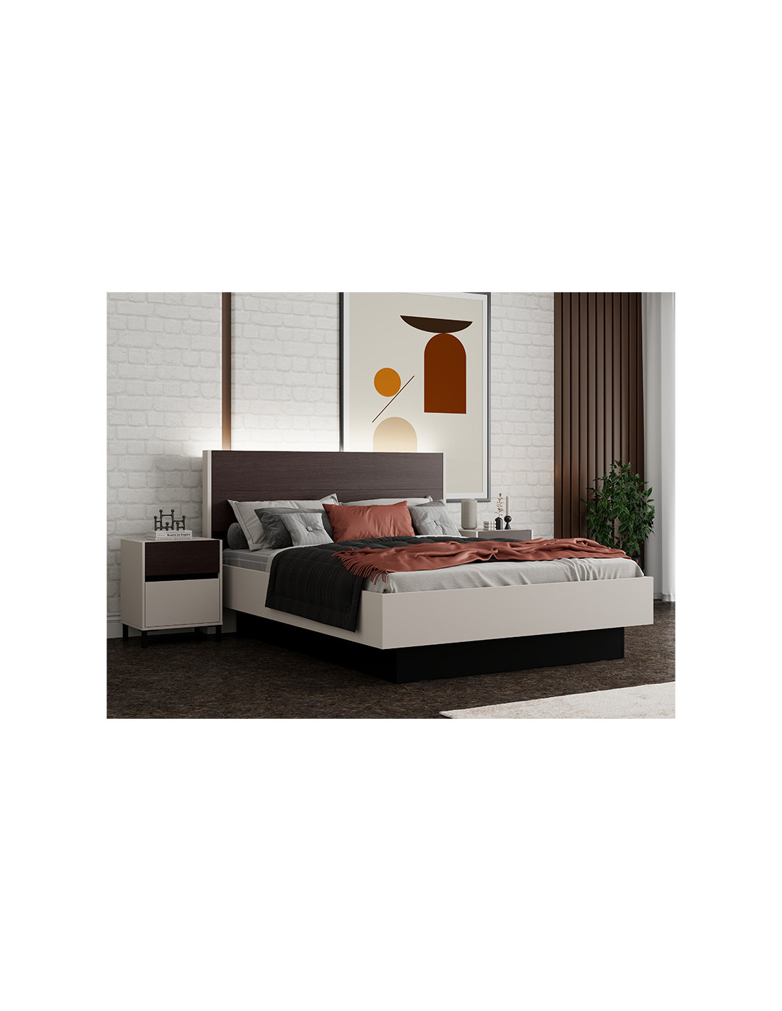 Bračni krevet COLHIDA 160 ili 180, s okvirom u dekoru kašmira i uzglavljem u kombinaciji tamnog hrasta Taylor i dekora crnog drva, doprinosi elegantnom i kontrastnom izgledu spavaće sobe. Dolazi bez podnice i madraca, te je namijenjen za madrac dimenzija 160×200 ili 180x200cm. Postoji mogućnost dodavanja seta LED rasvjete, što povećava funkcionalnost i vizualni efekt elementa.