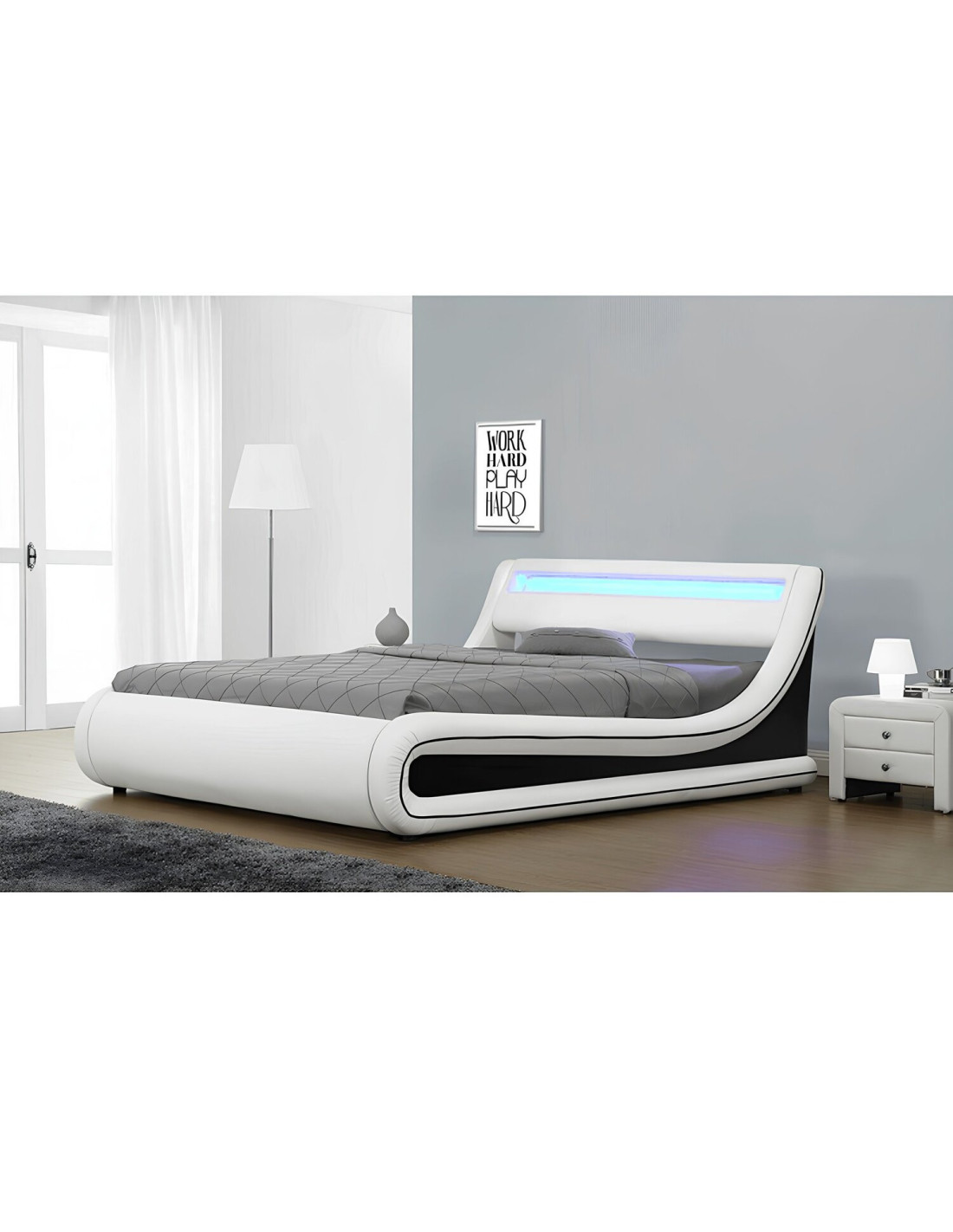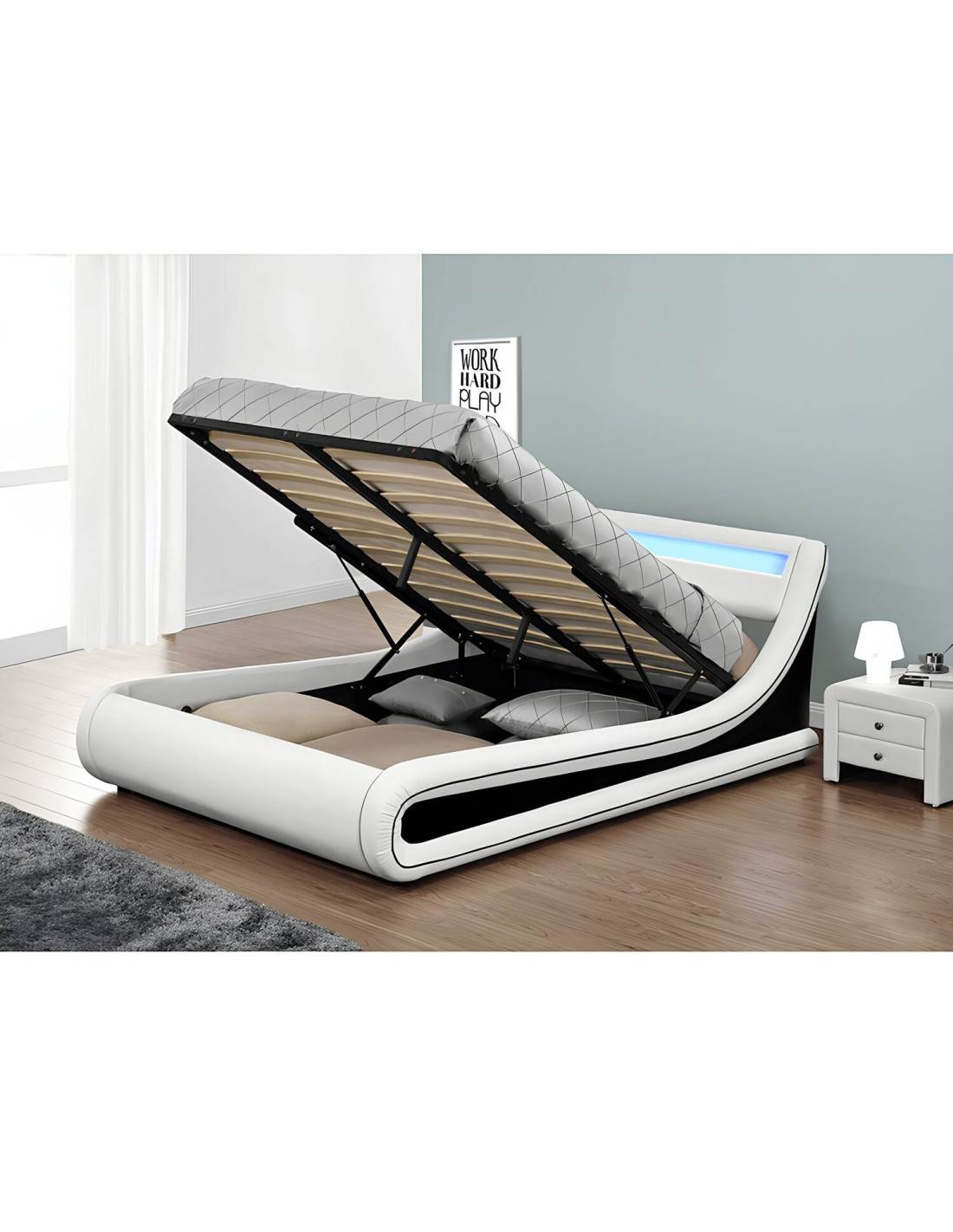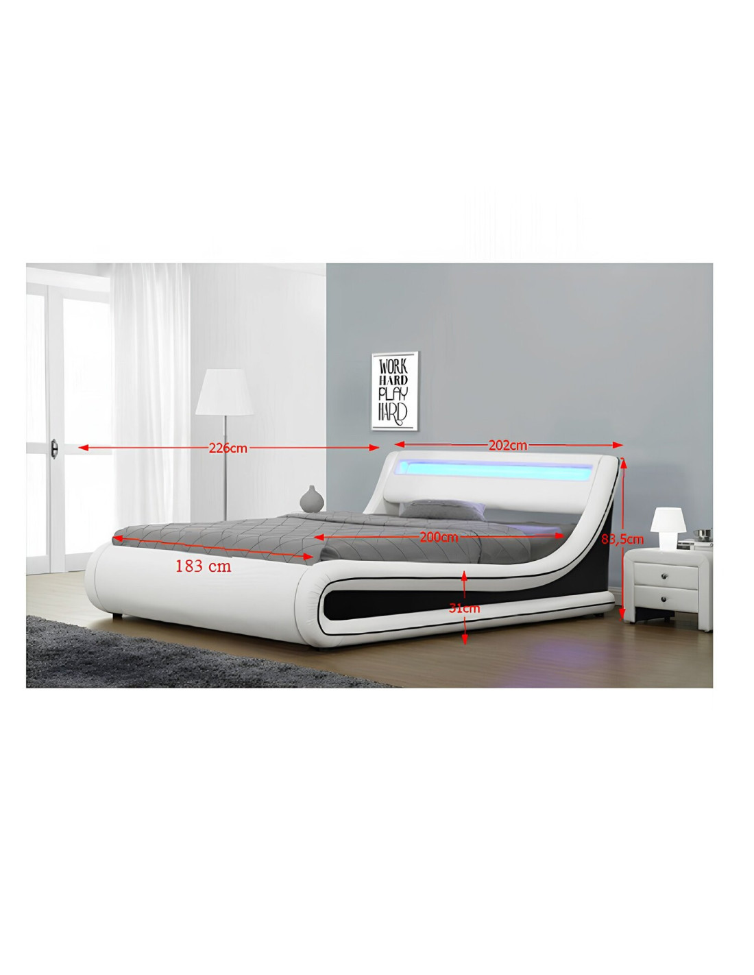 Krevet s kvalitetnim madracem i letvičastom podnicom ključ je zdravog sna. Krevet MANILA NEW s prostorom za pohranu, sklopivom letvičastom podnicom i ugrađenom RGB LED rasvjetom ispunjava sve uvjete da postane vaša oaza mira i harmonije. Krevet u kombinaciji bijele i crne eko kože izgleda vrlo elegantno. Zahvaljujući RGB LED rasvjeti, možete uživati u čaroliji svjetla u bilo kojoj boji. Krevet se isporučuje bez madraca. Preporučujemo kupnju madraca dimenzija 183x200 cm za krevet. Doživite buđenje ujutro s osmijehom na licu zahvaljujući udobnom krevetu i započnite novi dan puni energije.