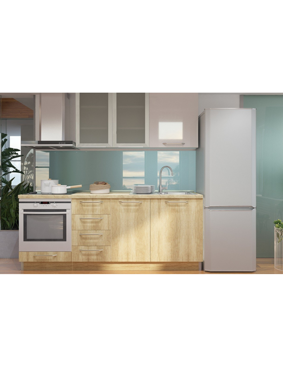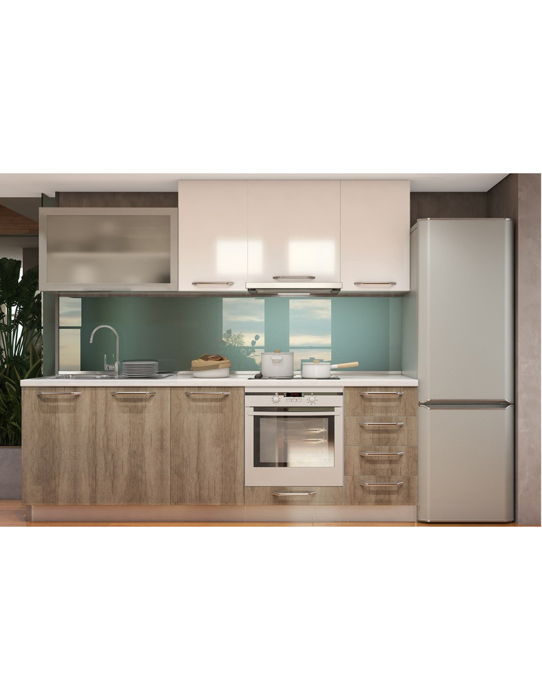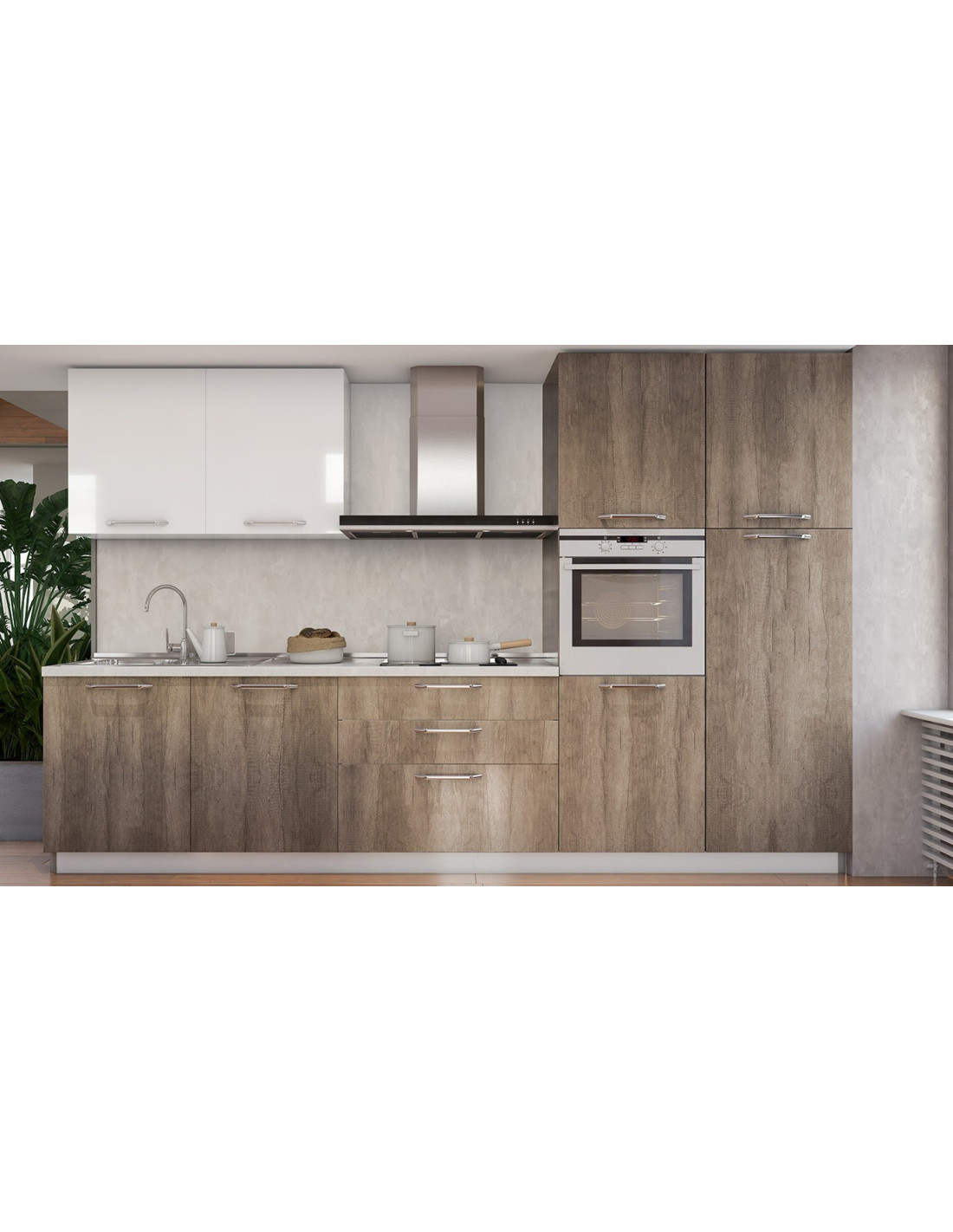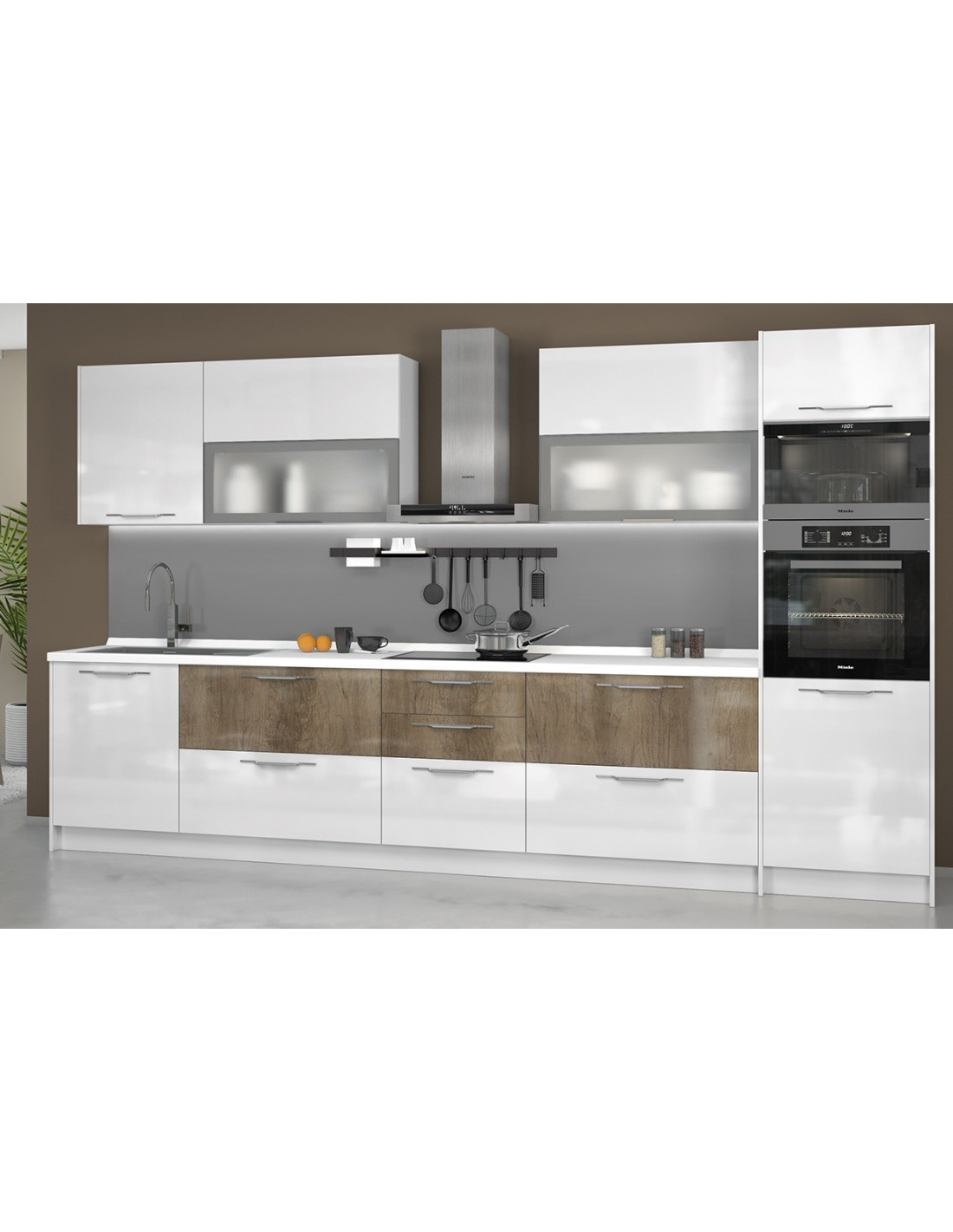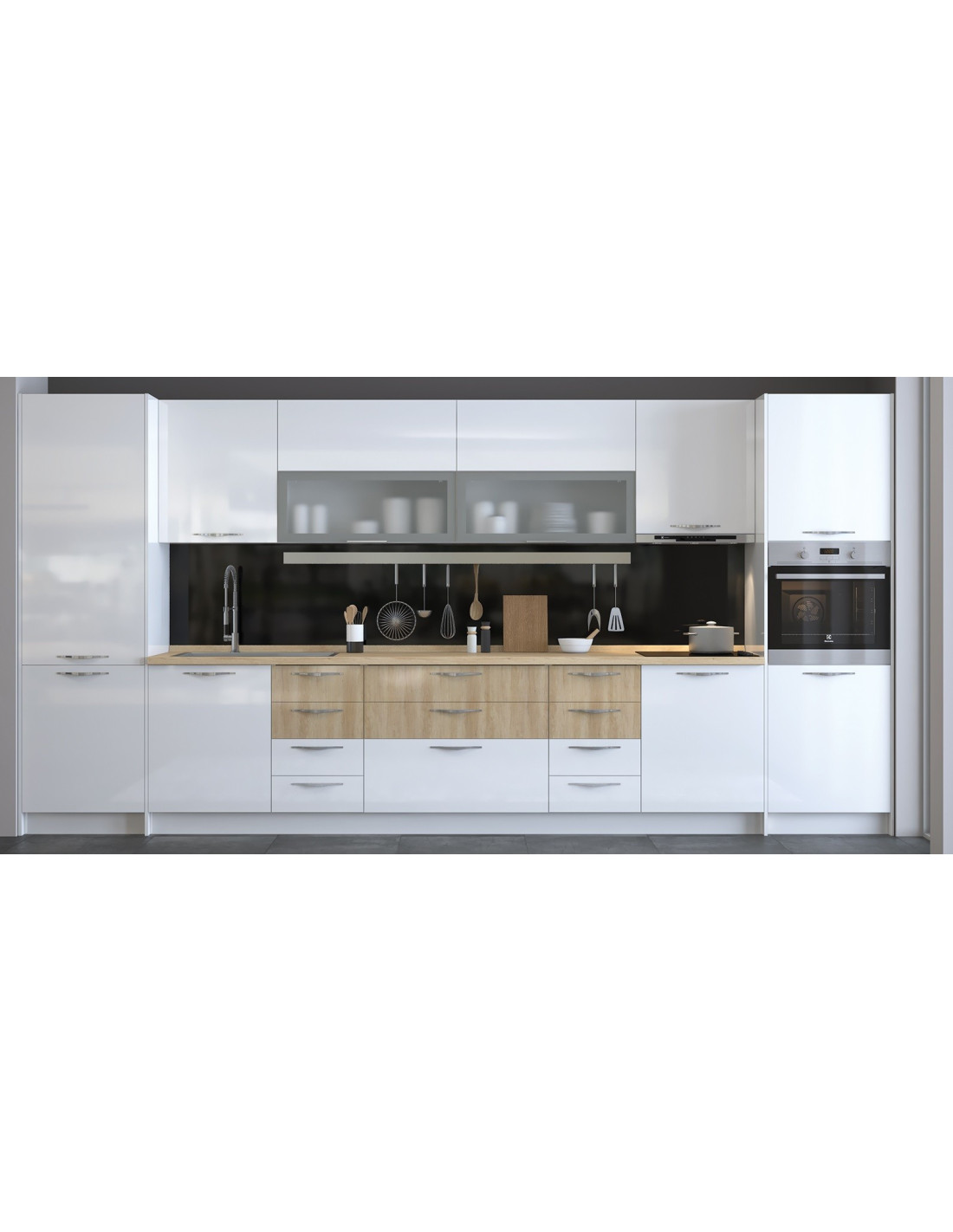 i elegancije u modernoj kuhinji. Elementi su dostupni u kombinacijama drva dekora Nebraske i tamne Nebraske sa bijelom ili bež bojom u visokom sjaju.