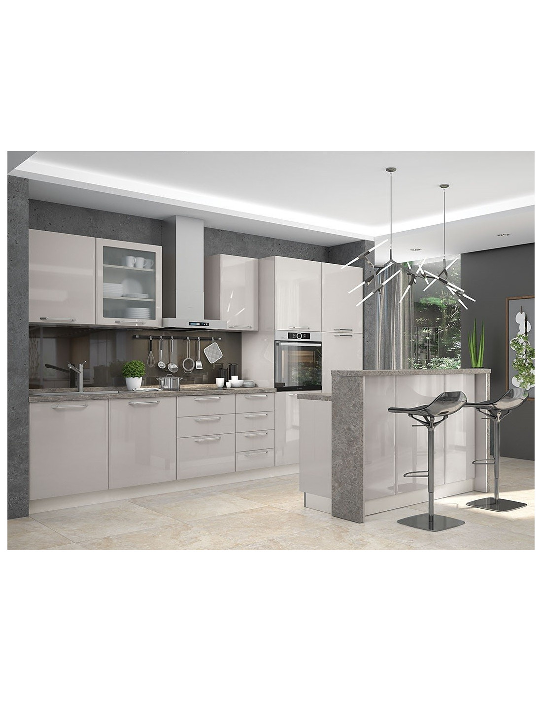 Kuhinja Modern sa frontovima od medijapana u Kašmir boji u visokom sjaju.
