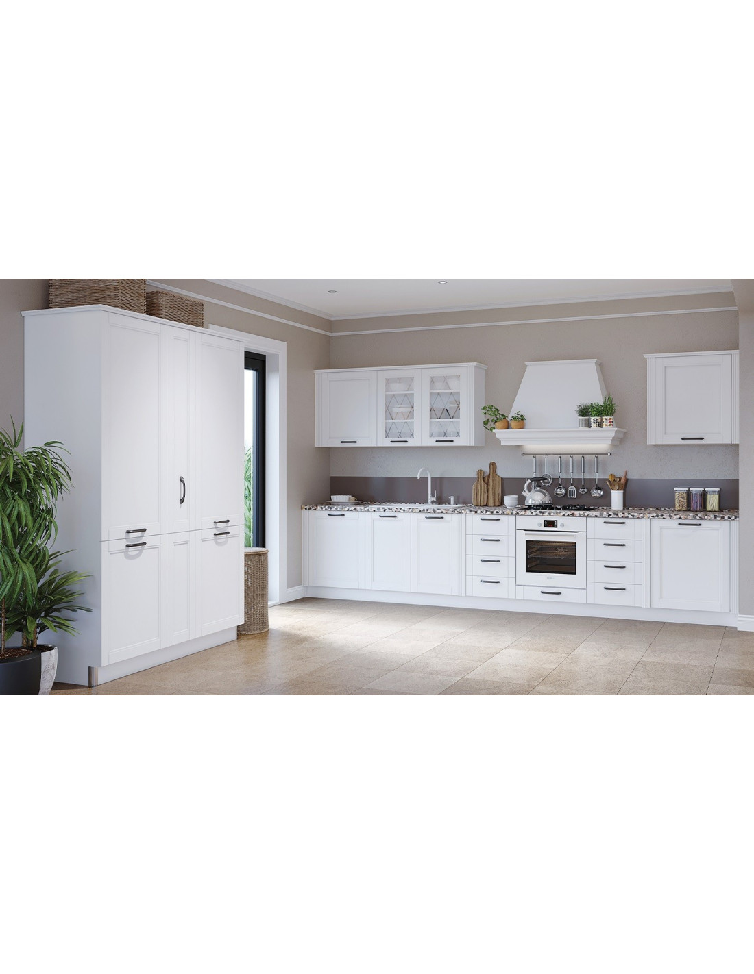 Kuhinja Tara sa frontovima od medijapana u dekoru Bijela mat lak. Profilirane fronte izrađene od 3D medijapana, u bojama grafit ili bijeli mat lak, sa savršeno glatkom mekom mat površinom, ostavljaju dojam elegancije i sofisticiranosti. Dvije potpuno različite boje ove kolekcije omogućit će jednostavno uklapanje u moderne i retro dizajnirane prostore.