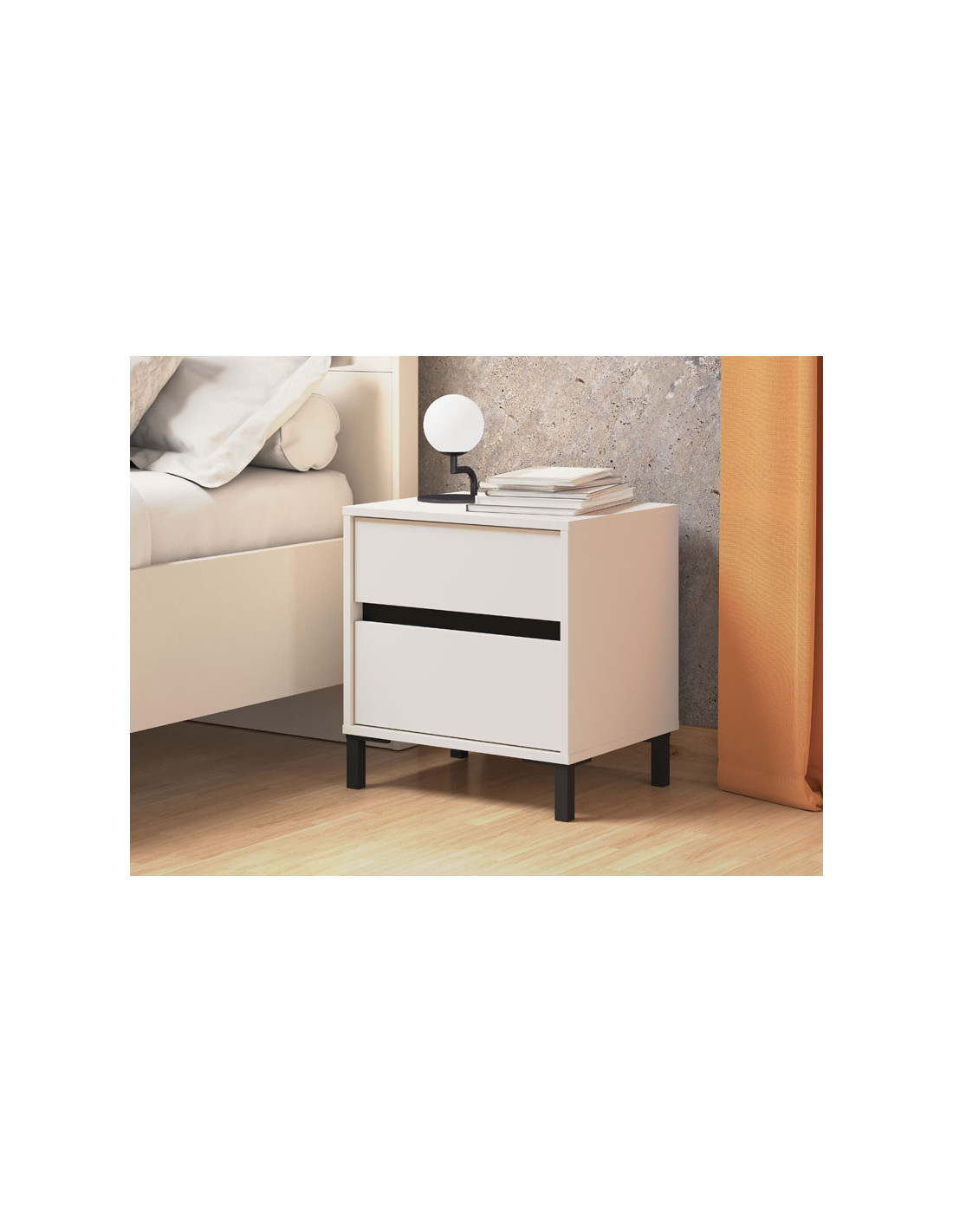 Noćni ormarić MARRON NO2F u kombinaciji kašmir dekora i crne mat folije, moderno je dizajniran i autentičan komad namještaja koji je neophodan i vrlo praktičan element u svakom ambijentu spavaće sobe. Upotrebni prostor noćnog ormarića čine dvije praktične ladice.