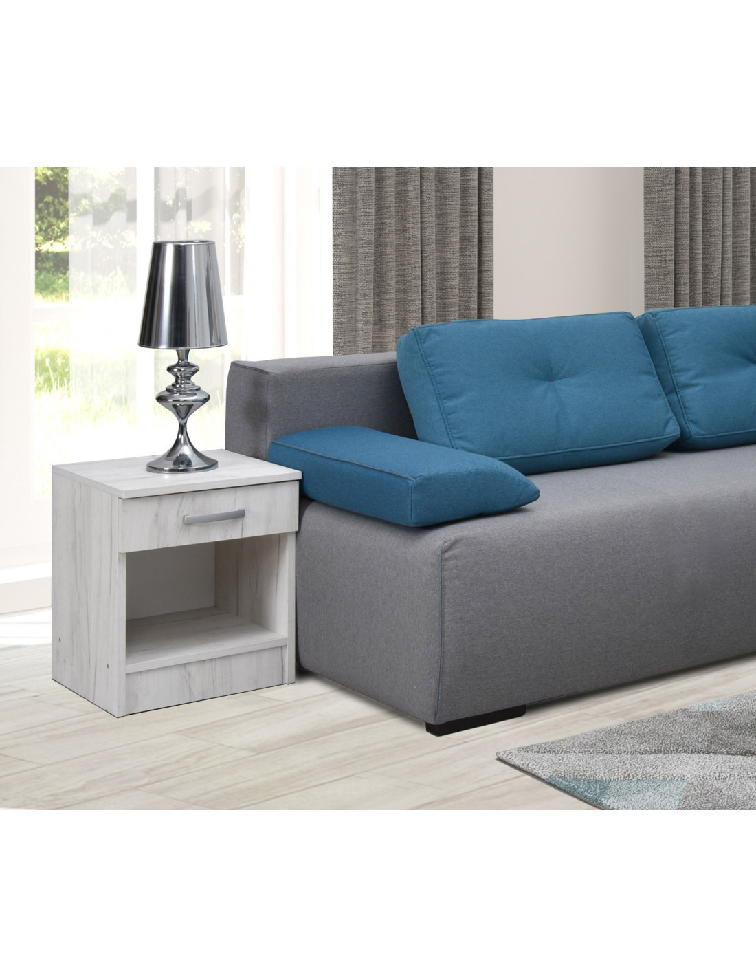 Alfa noćni ormarići izrađeni su od oplemenjene šperploče debljine 18 mm, a ručka i vodilice ladica su metalne. Prostor ispod ladice idealan je za pohranu knjiga i časopisa. Alfa noćni ormarići sa svojom jednom ladicom savršeno će se uklopiti u interijer svake spavaće sobe.