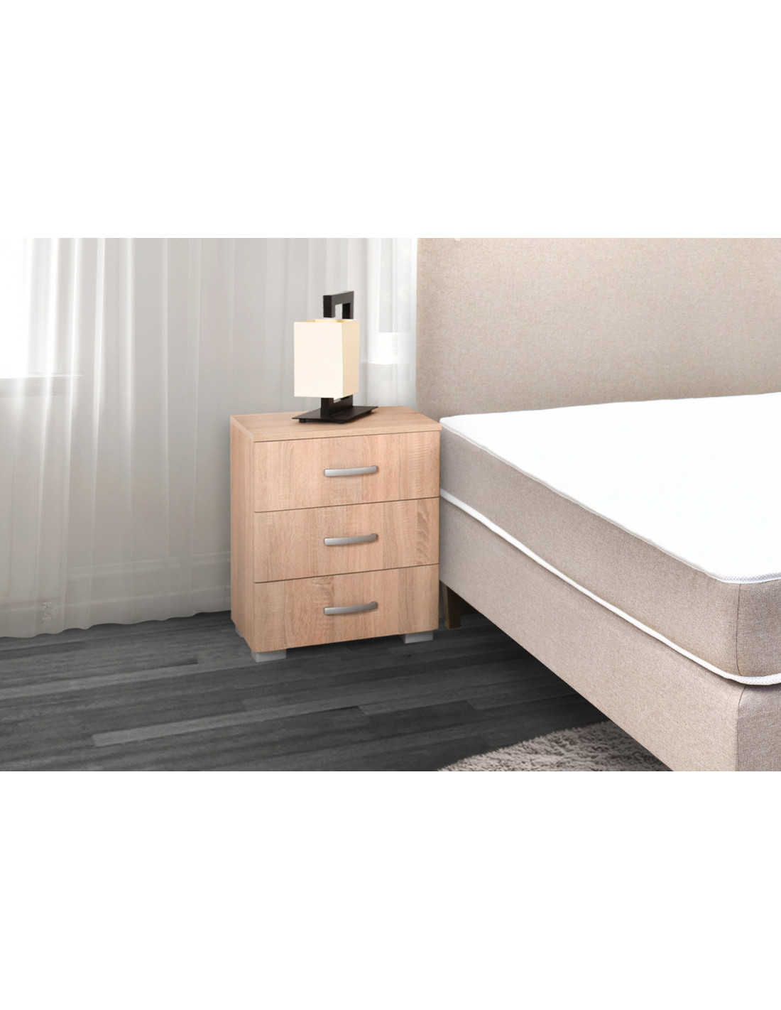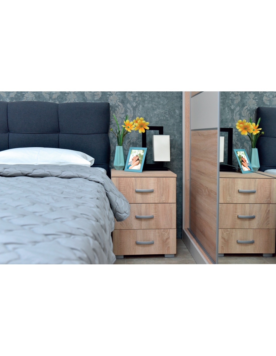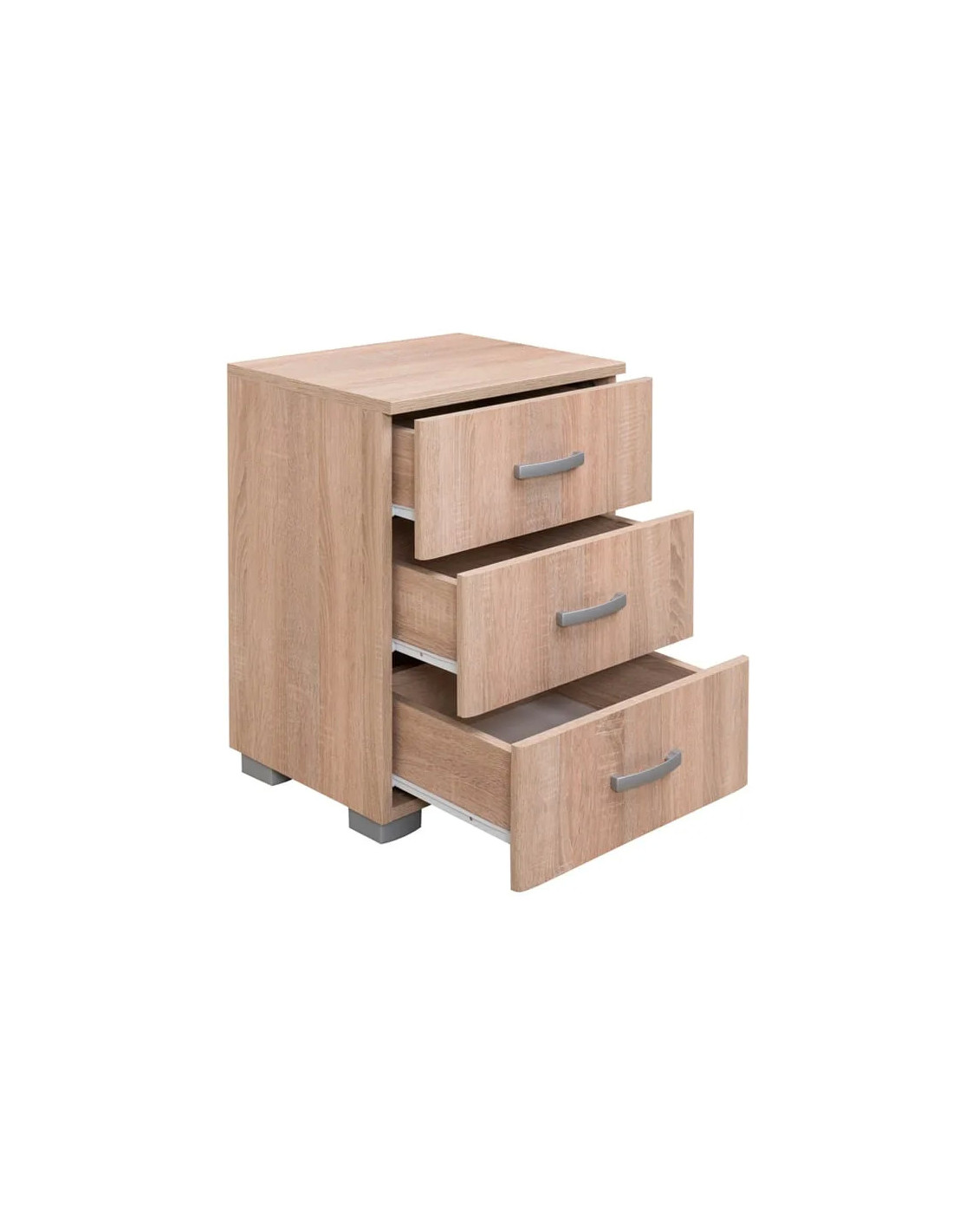 Noćni ormarić Matis 3F nastao je spojem modernih materijala i minimalističkog dizajna. Noćni ormarić Matis 3F izrađen je od oplemenjenog masivnog drva debljine 18 mm, sadrži tri ladice na metalnim klizačima i metalnim ručkama. Osim u spavaćim sobama, noćni ormarić Matis 3F može se koristiti i kao mini komoda u dječjim sobama.