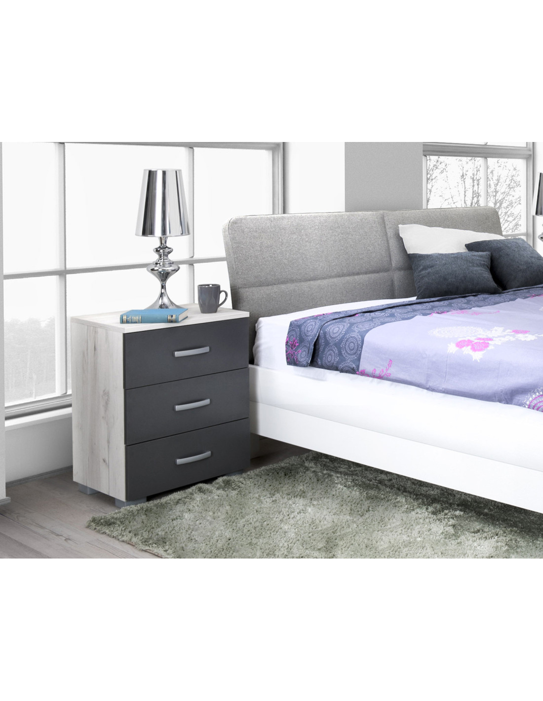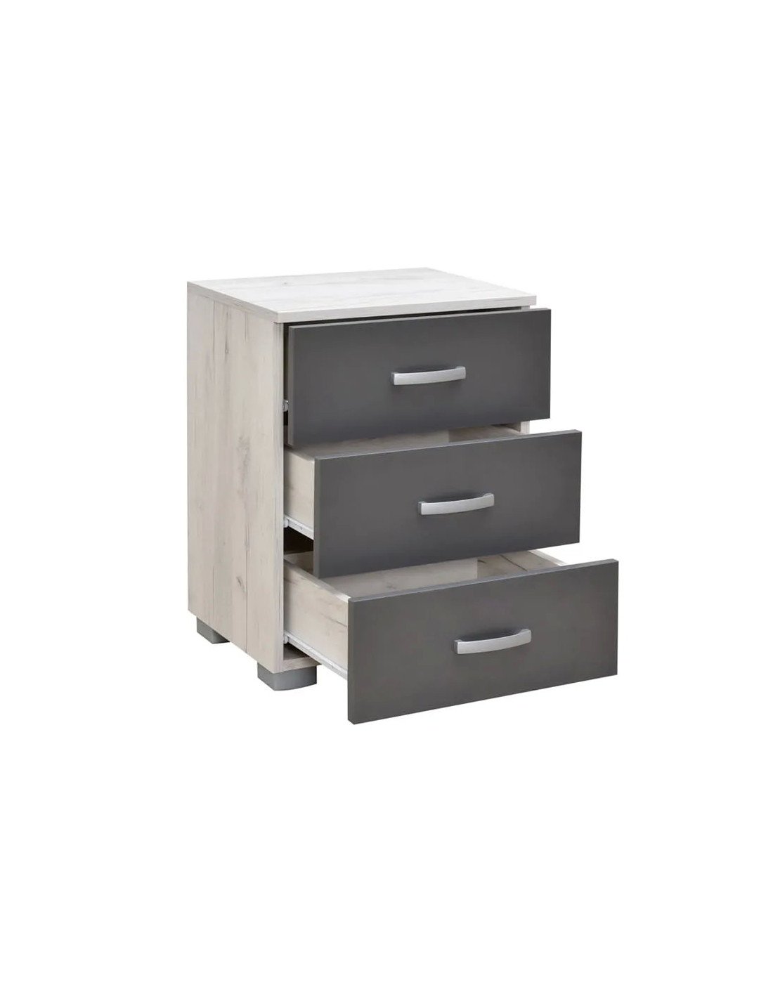 Noćni ormarić Matis 3F nastao je spojem modernih materijala i minimalističkog dizajna. Noćni ormarić Matis 3F izrađen je od oplemenjenog masivnog drva debljine 18 mm, sadrži tri ladice na metalnim klizačima i metalnim ručkama. Osim u spavaćim sobama, noćni ormarić Matis 3F može se koristiti i kao mini komoda u dječjim sobama.