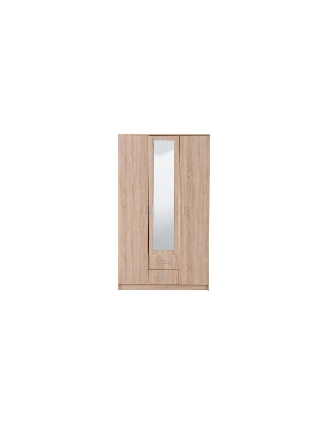 Elegantni trokrilni model ormara HANA 3K2FO, u sonoma hrast dizajnu, s ormar ogradom, tri ili četiri police i dvije ladice, pridonijet će funkcionalnoj organizaciji ambijenta. Ogledalo u srednjem dijelu ormara HANA 3K2FO estetski će obogatiti životni prostor.
