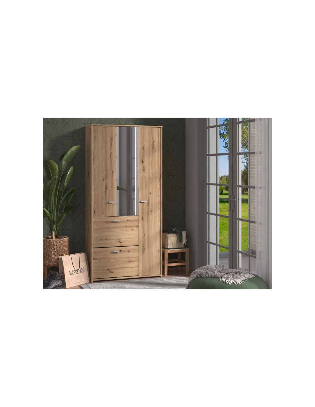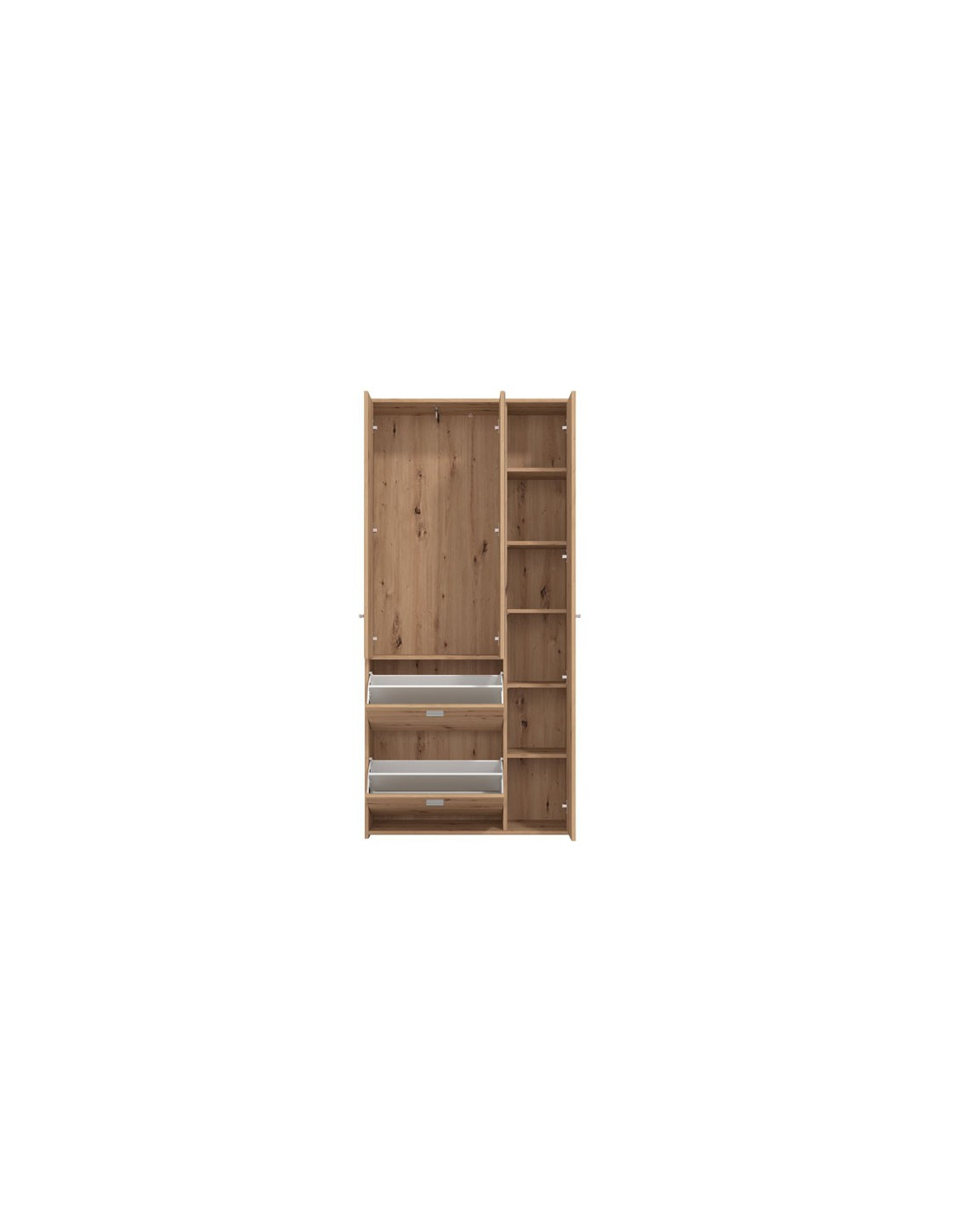 Ormar CONGRO u artisan hrastovom dekoru, funkcionalno je i moderno rješenje za uređenje sobe ili hodnika. Interijer se sastoji od garderobnog dijela, kao i dijela s policama, a ima i dvije dodatne police za dvoredno odlaganje cipela. Ogledalo u središnjem dijelu, osim funkcionalnosti, doprinosi i estetskoj privlačnosti.