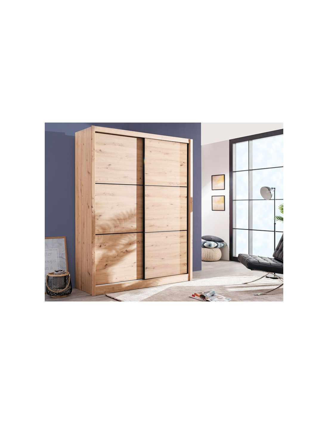 Ormar NAVARA 165 u uzorku artisan hrasta moderno je dizajnirano i praktično rješenje za odlaganje. Unutrašnjost se sastoji od segmenta s policama u lijevom dijelu i segmenta s ormar-ogradom u desnom dijelu. Posebna je prednost ovog modela klizni mehanizam koji pridonosi ekonomičnoj organizaciji raspoloživog prostora. Dio je linije garderobe NAVARA, pa je stilski kompatibilan i s ostalim modelima.