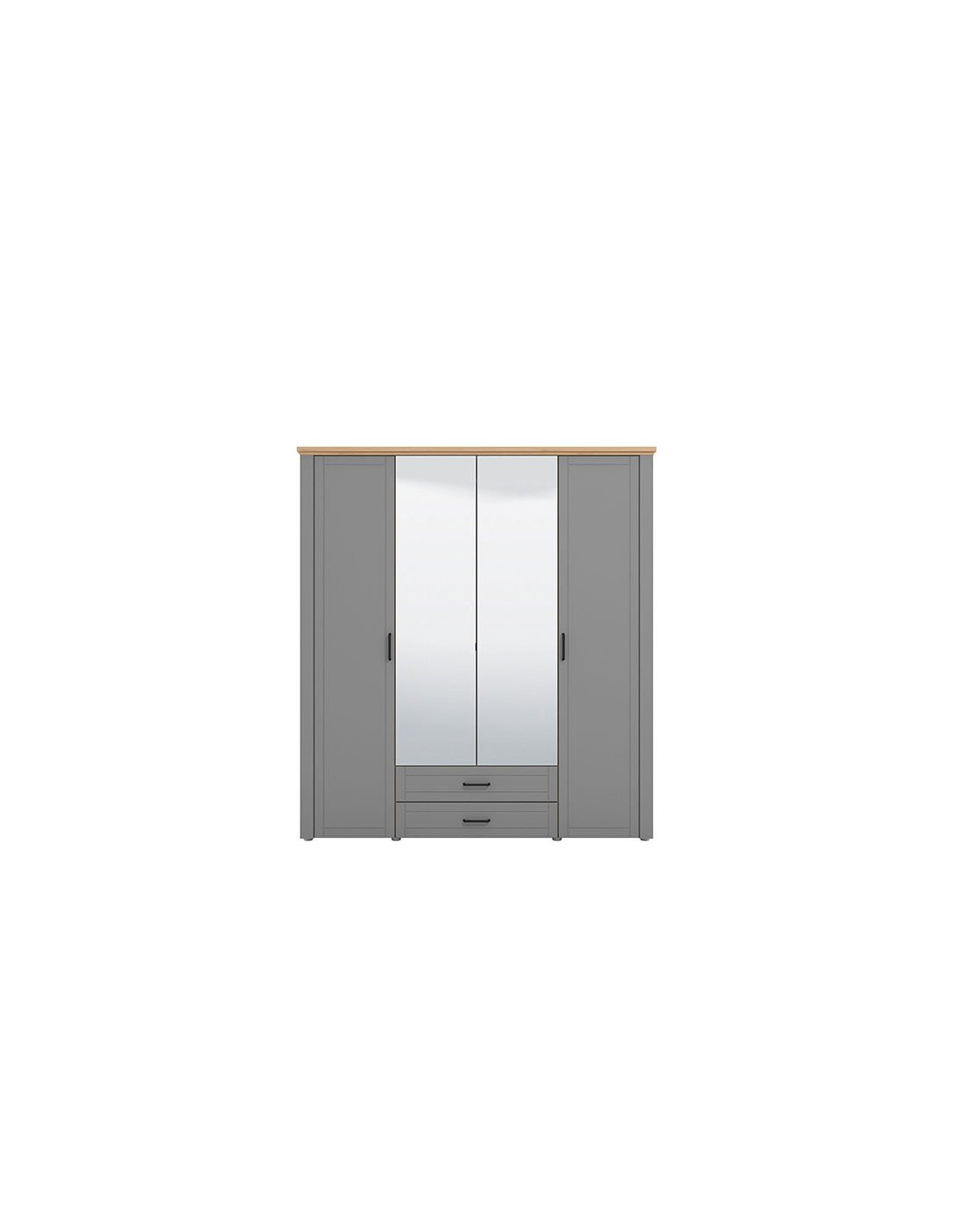 Valencia 4K2F2O ormar u prostor unosi suptilniju, monokromatsku notu i model je suvremenog dizajnerskog ormara i velike praktične vrijednosti korištenja. Fronte su obogaćene crnim ručkama jednostavnog dizajna, kao i ogledalom u središtu. Unutrašnjost se sastoji od segmenta s policama s lijeve i desne strane, segmenta s šipkom za presvlačenje u sredini, kao i dvije praktične ladice. Izražene prednosti ovog ormara su funkcionalnost i izvrsna organizacija prostora za odlaganje.