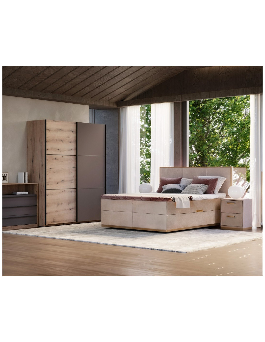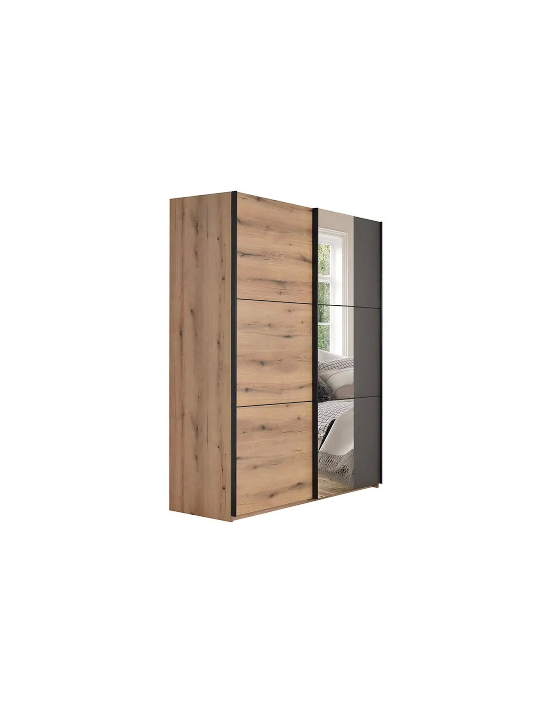 Američki ormar AP 180 s ogledalom pravo je rješenje za postizanje praktičnosti interijera i maksimalnog iskorištenja raspoloživog prostora. Unutrašnjost ormara je dvodijelna. Jedan dio američkog ormara sadrži ormarsku šipku, police i 2 ladice, a drugi dio ormarsku šipku za odlaganje odjeće. Ormar ima mehanizam za soft-close.