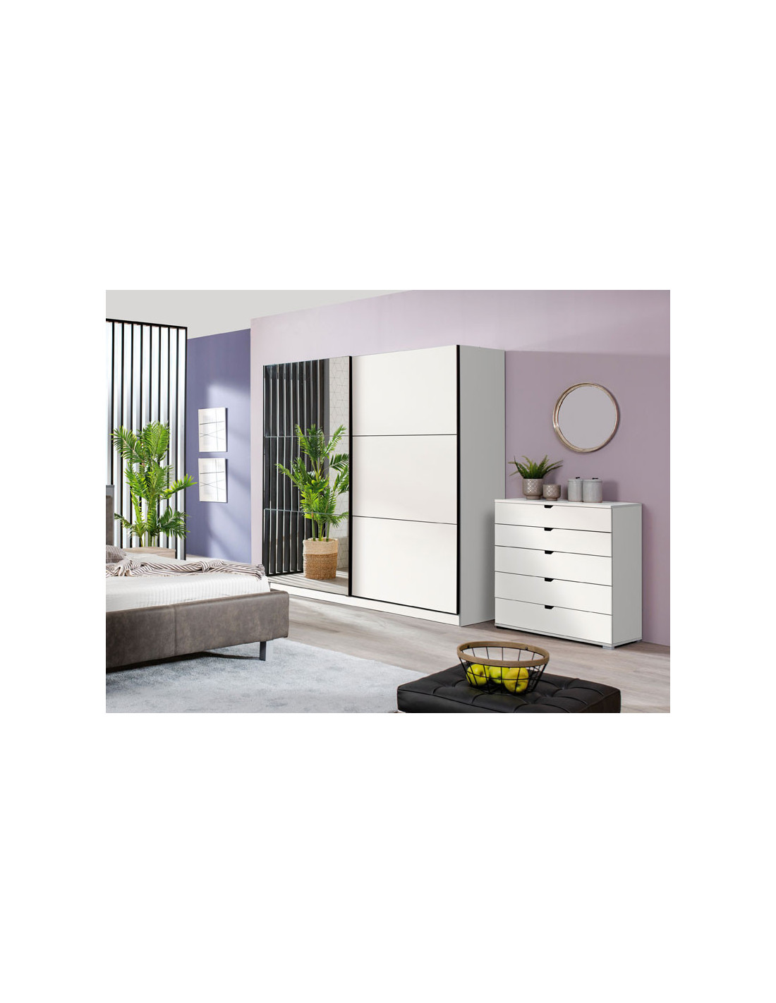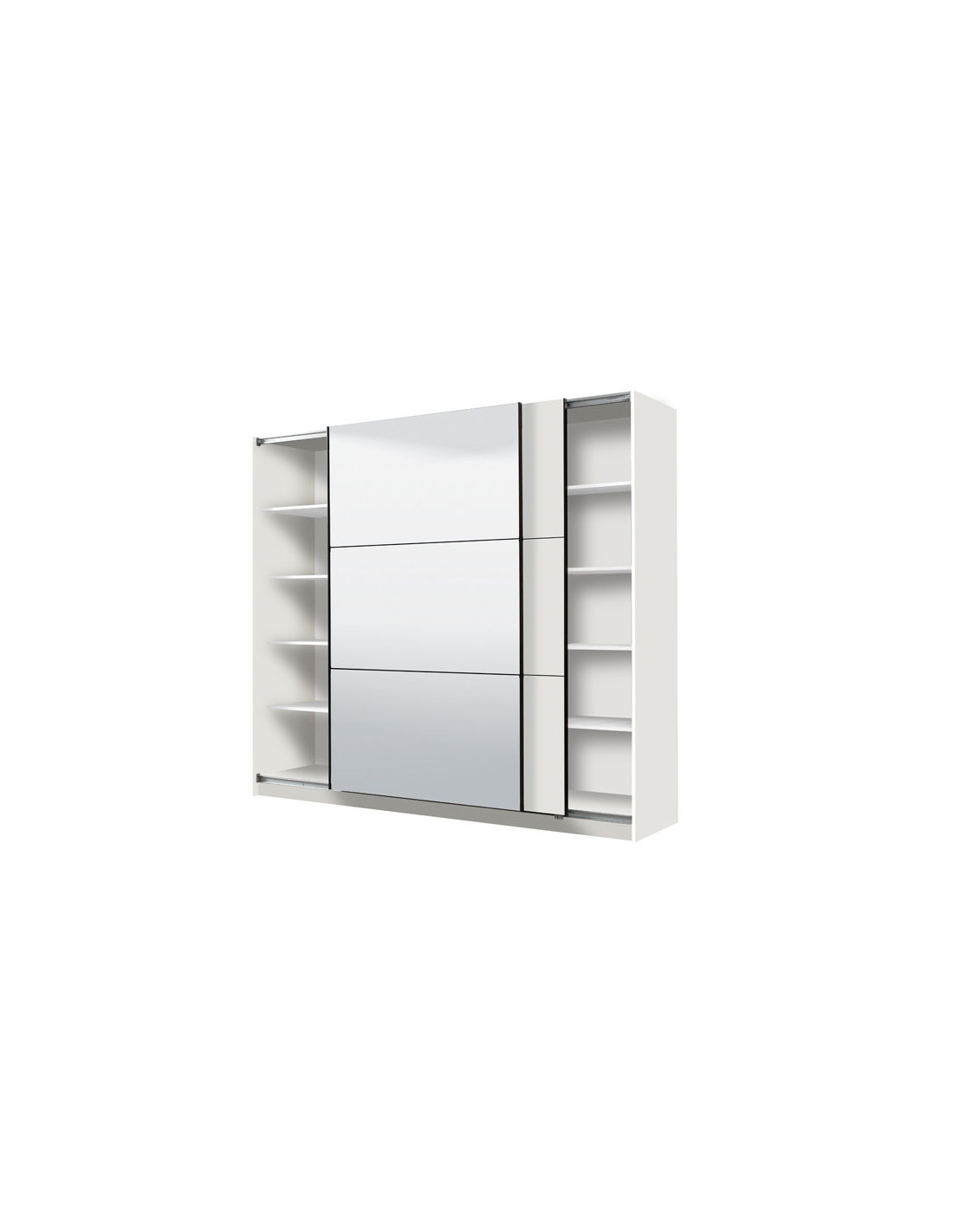 Ormar SIERRA 220 OG u bijeloj boji model je ormara suvremenog dizajna i velike praktične vrijednosti. Interijer se sastoji od segmenta s policama u lijevom i desnom dijelu, te segmenta s garderobnim šankom u središnjem dijelu. Posebna pogodnost ovog modela je klizni mehanizam koji doprinosi ekonomičnoj organizaciji raspoloživog prostora, kao i ogledalo na lijevom kliznom elementu.