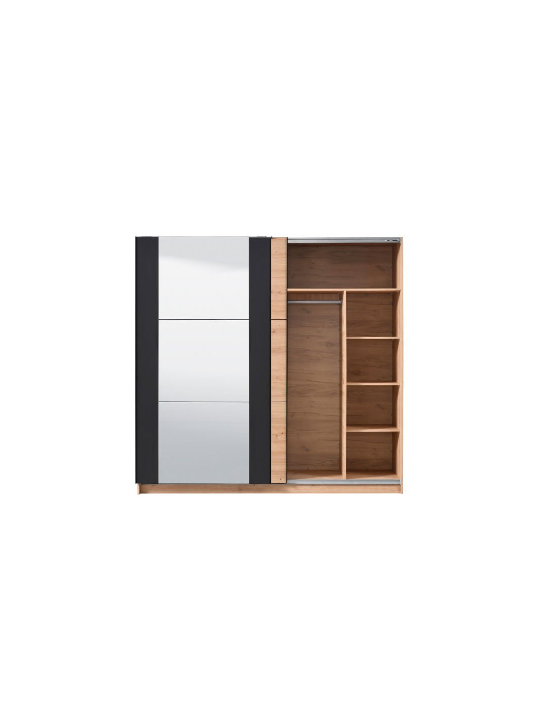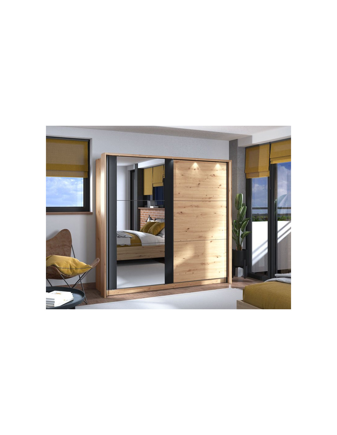 Model dvokrilnog kliznog ormara SARDINIA 220 OG, u kombinaciji hrasta artisan i crnog drvenog dekora, s ogledalom na jednom krilu, spoj je topline prirodnog i rustikalnog sa obilježjima industrijskog stila u uređenju interijera. U pomoćnom prostoru ovog modela nalaze se dvostrane police i dvostrane šipke za garderobu. Pripada istoimenoj kolekciji SARDINIA čijim elementima zaokružuje cjelokupni interijer kada je u pitanju opremanje spavaće sobe. Postoji mogućnost dodatne ugradnje retardera kliznog mehanizma.