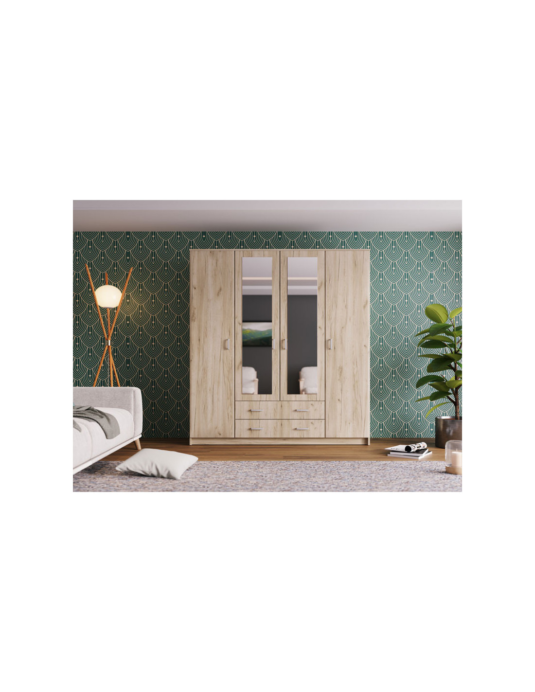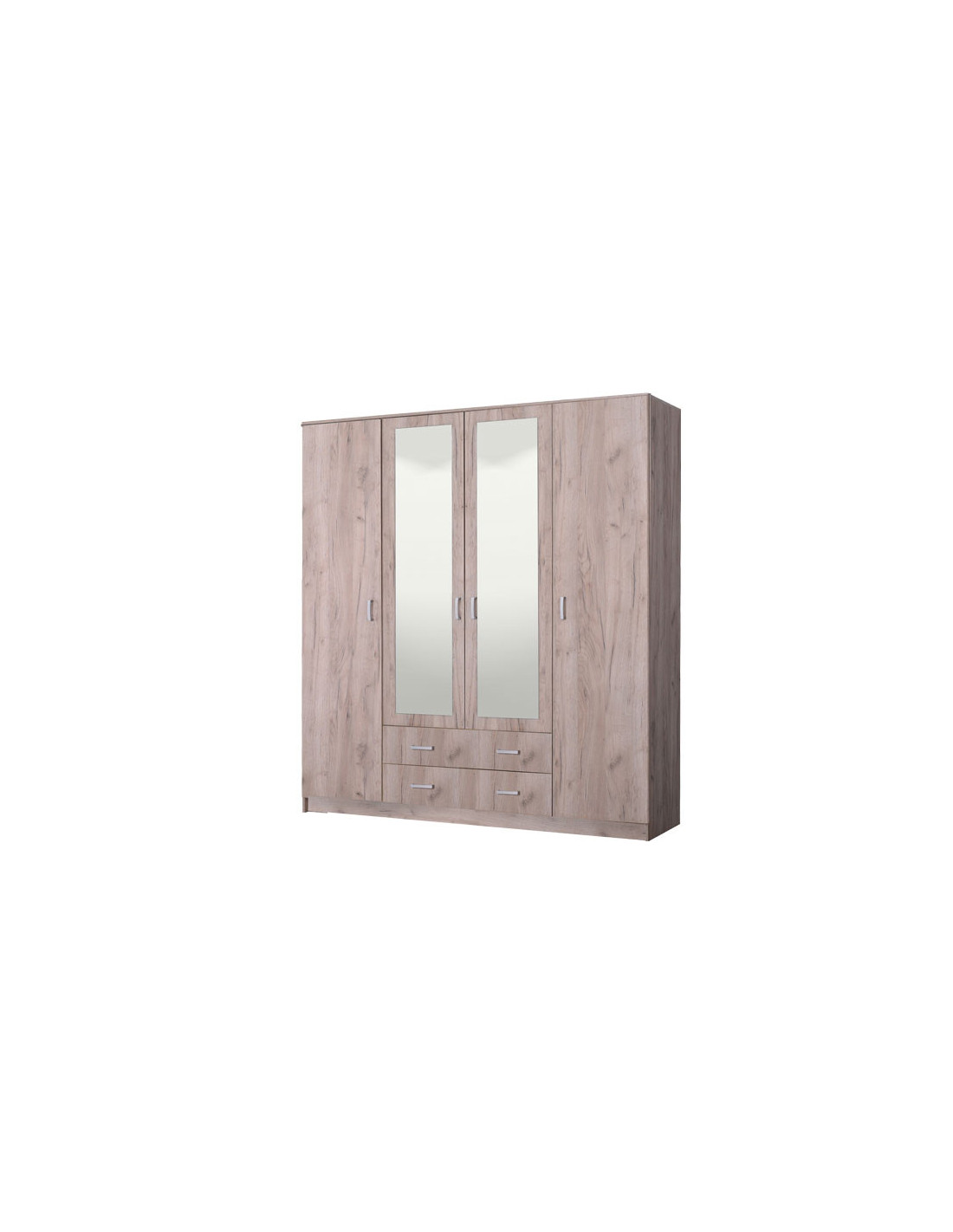 Elegantni model ormara HANA 4K2F2O, u uzorku sivog hrasta, s garderobnom šipkom u središnjem dijelu, četiri police i dvije ladice, funkcionalno će doprinijeti organizaciji vaših stvari. Ogledala na središnjem dijelu ormara HANA 4K2F2O estetski će uljepšati životni prostor.