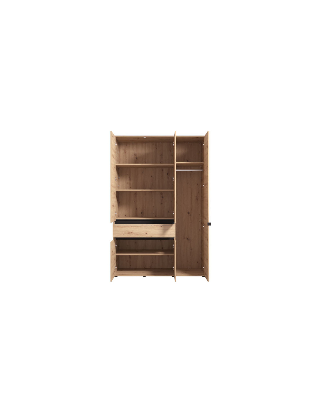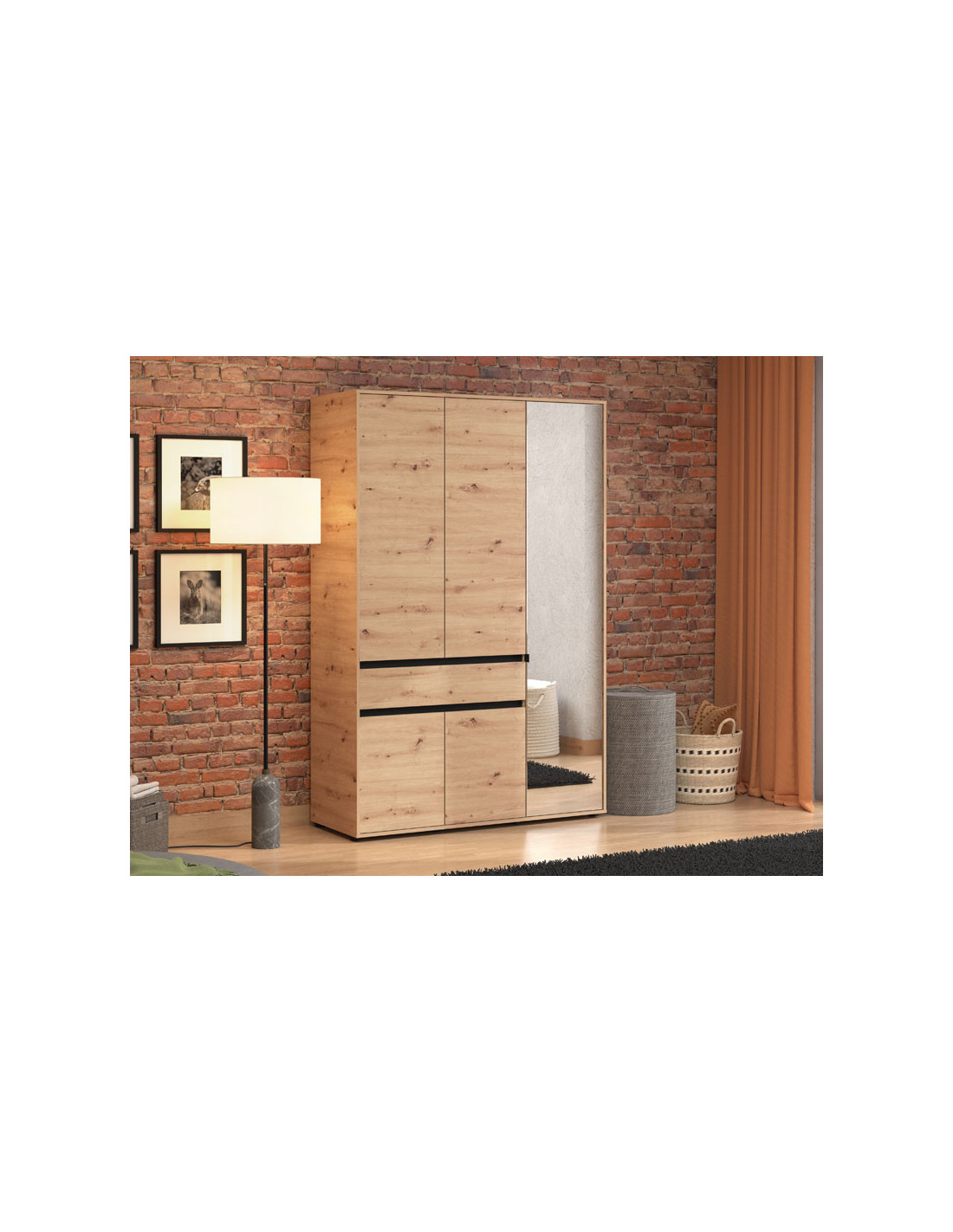 Ormar CORBETT 3K3F1O h211 u kombinaciji dekora artisan hrasta i crne mat folije, dio je kolekcije ormara CORBETT. Korisni prostor sastoji se od garderobne šipke u krilu iza ogledala, dok gornji i donji dio srednjeg i lijevog krila čine zatvorene pregrade, a u središnjem dijelu nalazi se praktična ladica. Ovakav model ormara funkcionalno će doprinijeti organizaciji ambijenta, ali i poboljšati njegovu estetiku.