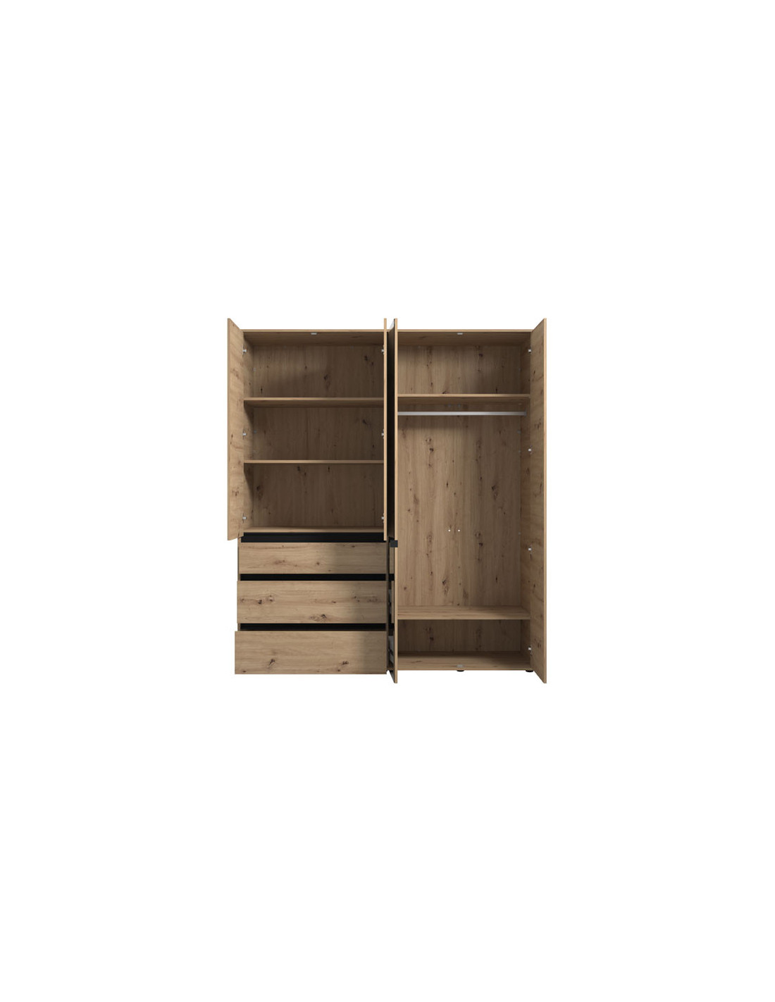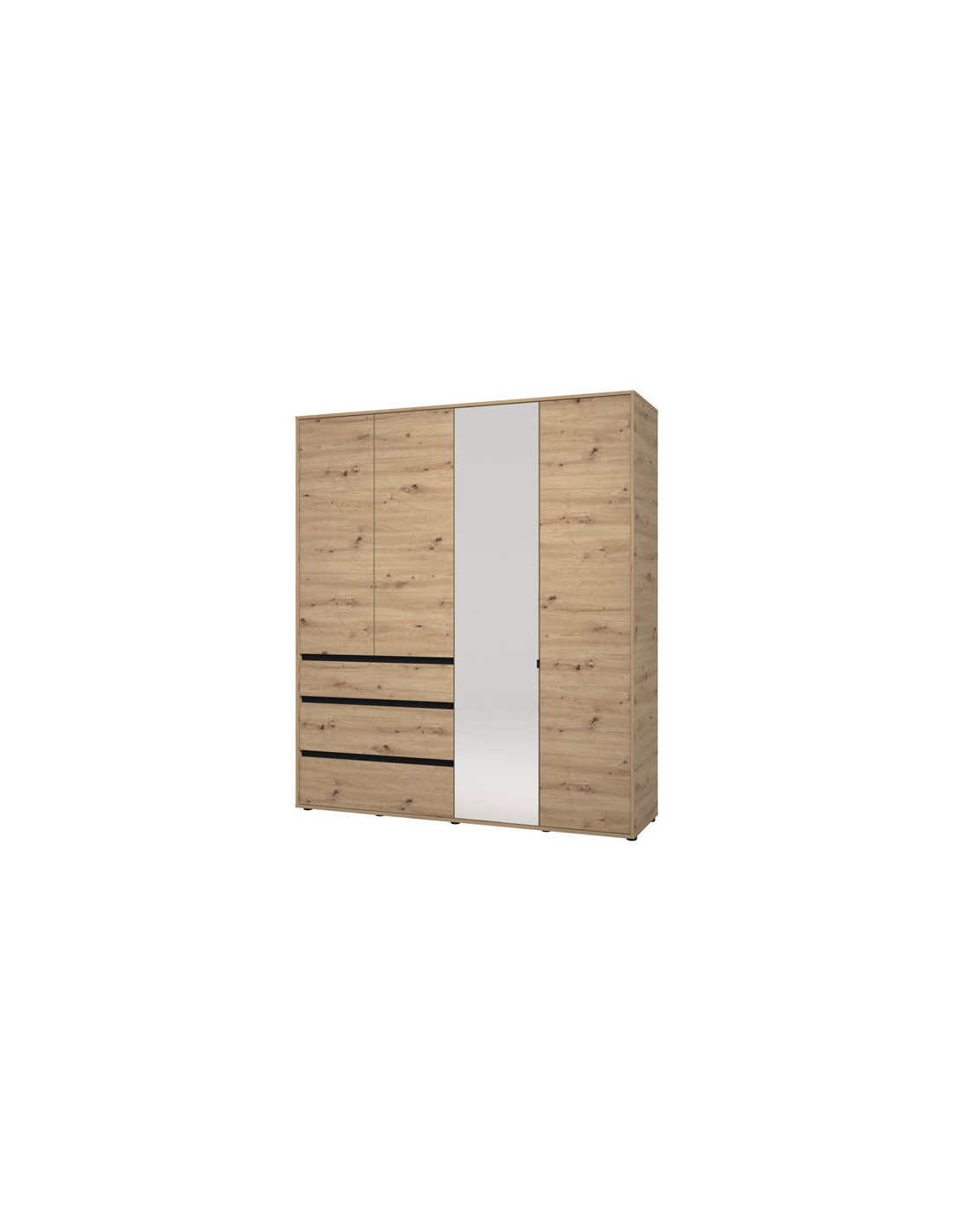 Ormar CORBETT 4K3F1O h211 u kombinaciji dekora kašmira i crne mat folije dio je kolekcije ormara CORBETT. Korisni prostor ovog ormara s četiri krila sastoji se od dijela s garderobnom šipkom, zatvorenog pregradnog dijela i tri praktične ladice. Ovaj model ormara također ima ogledalo, što doprinosi njegovoj funkcionalnosti i estetici.