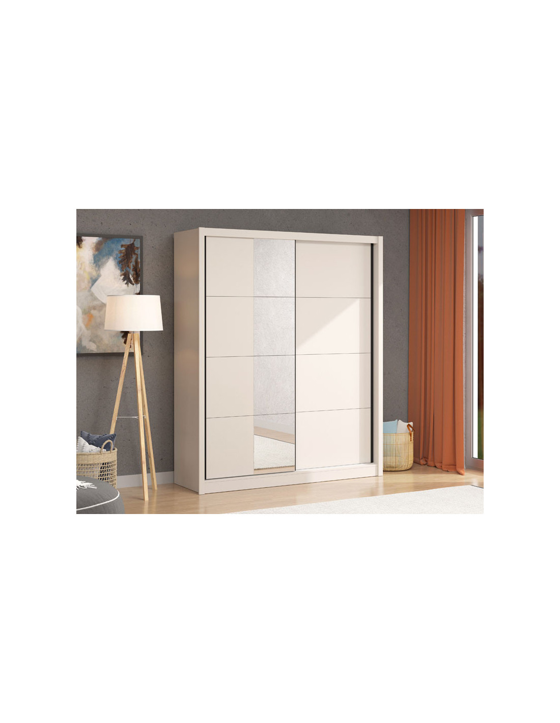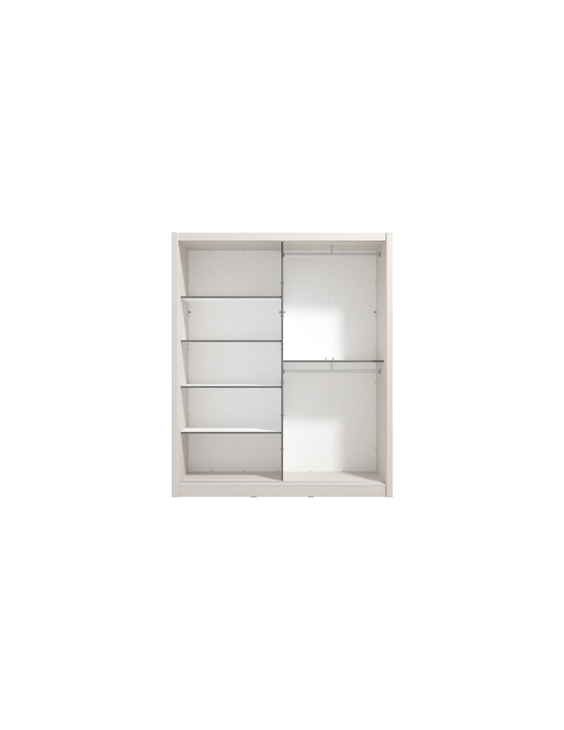 Model ormara ALBI 180 OG s kliznim vratima, u dekoru kašmira i segmentom s ogledalom na lijevoj pročelju, doprinosi funkcionalnosti, estetici i maksimalnom iskorištenju prostora interijera. Korisni prostor ovog modela sastoji se od polica s lijeve strane i šipki za ormar s desne strane.