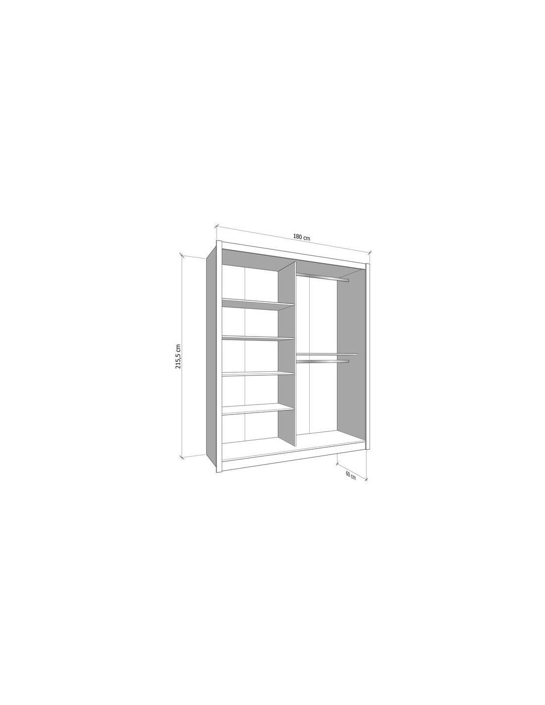 Š 180 cm / D 60 cm / V 215,5 cm