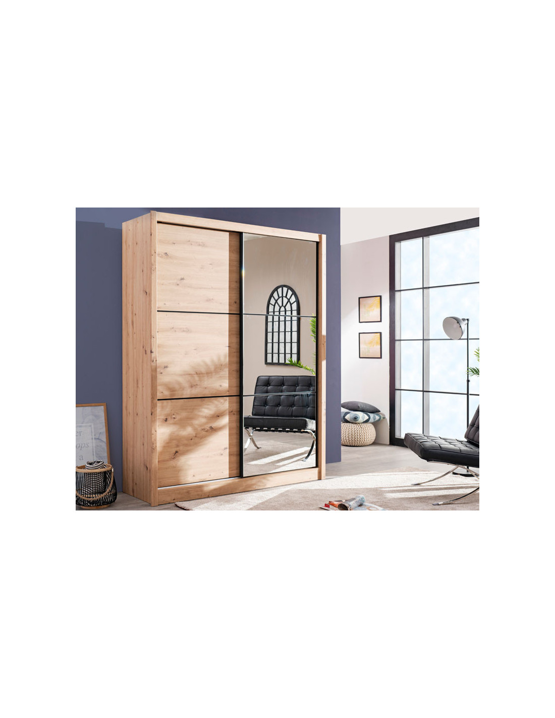 Ormar NAVARA 165 u dizajnu u artisan hrasta, moderno je dizajniran i praktično rješenje za pohranu. Unutrašnjost se sastoji od segmenta s policama u lijevom dijelu i segmenta s garderobnom šipkom u desnom dijelu. Posebna prednost ovog modela je klizni mehanizam koji doprinosi ekonomičnoj organizaciji raspoloživog prostora, kao i ogledalo na desnom kliznom elementu. Dio je linije ormara NAVARA, pa je stilski kompatibilan s drugim modelima.
