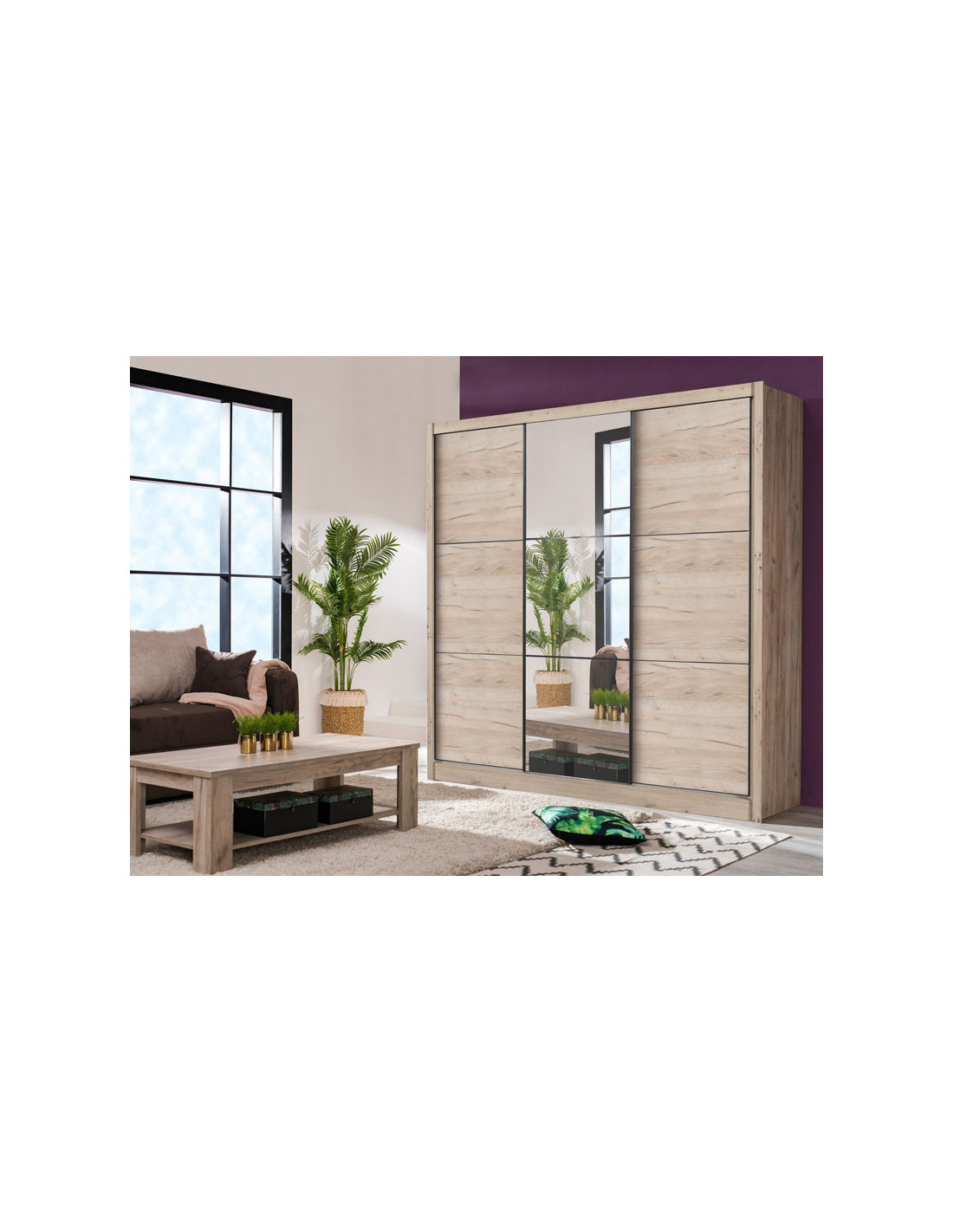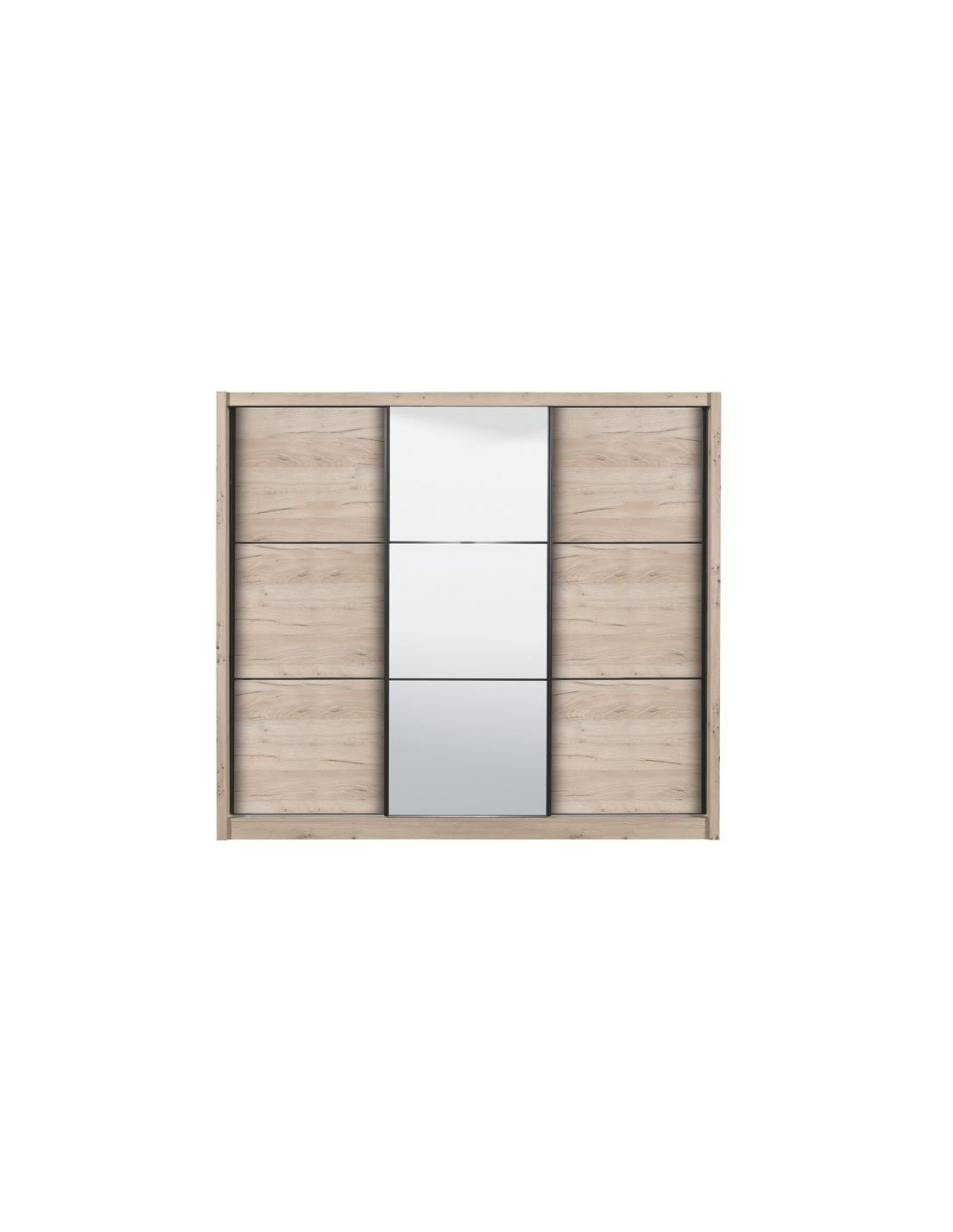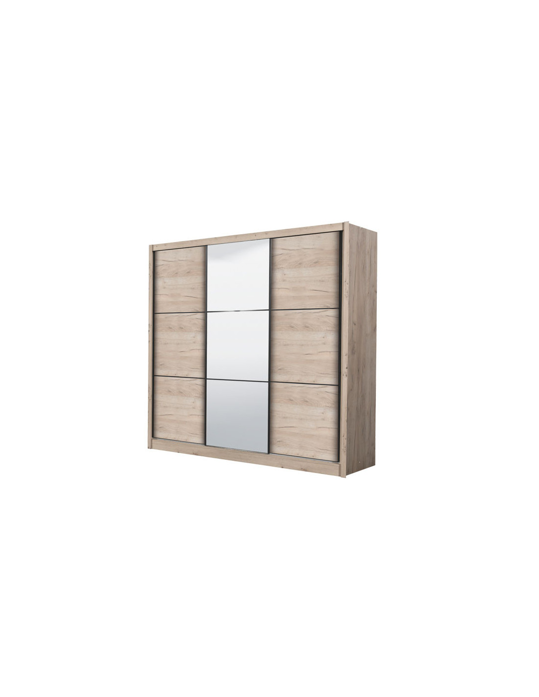 Ormar NAVARA 245 OG u dizajnu sivog hrasta moderno je dizajniran i predstavlja praktično rješenje za pohranu. Unutrašnjost se sastoji od segmenta s policama u lijevom i desnom dijelu, kao i segmenta s prečkom za garderobu u središnjem dijelu. Posebna prednost ovog modela je klizni mehanizam koji doprinosi ekonomičnoj organizaciji raspoloživog prostora, kao i ogledalo smješteno u središnjem dijelu ormara. Dio je linije ormara NAVARA, pa je stilski kompatibilan s drugim modelima.