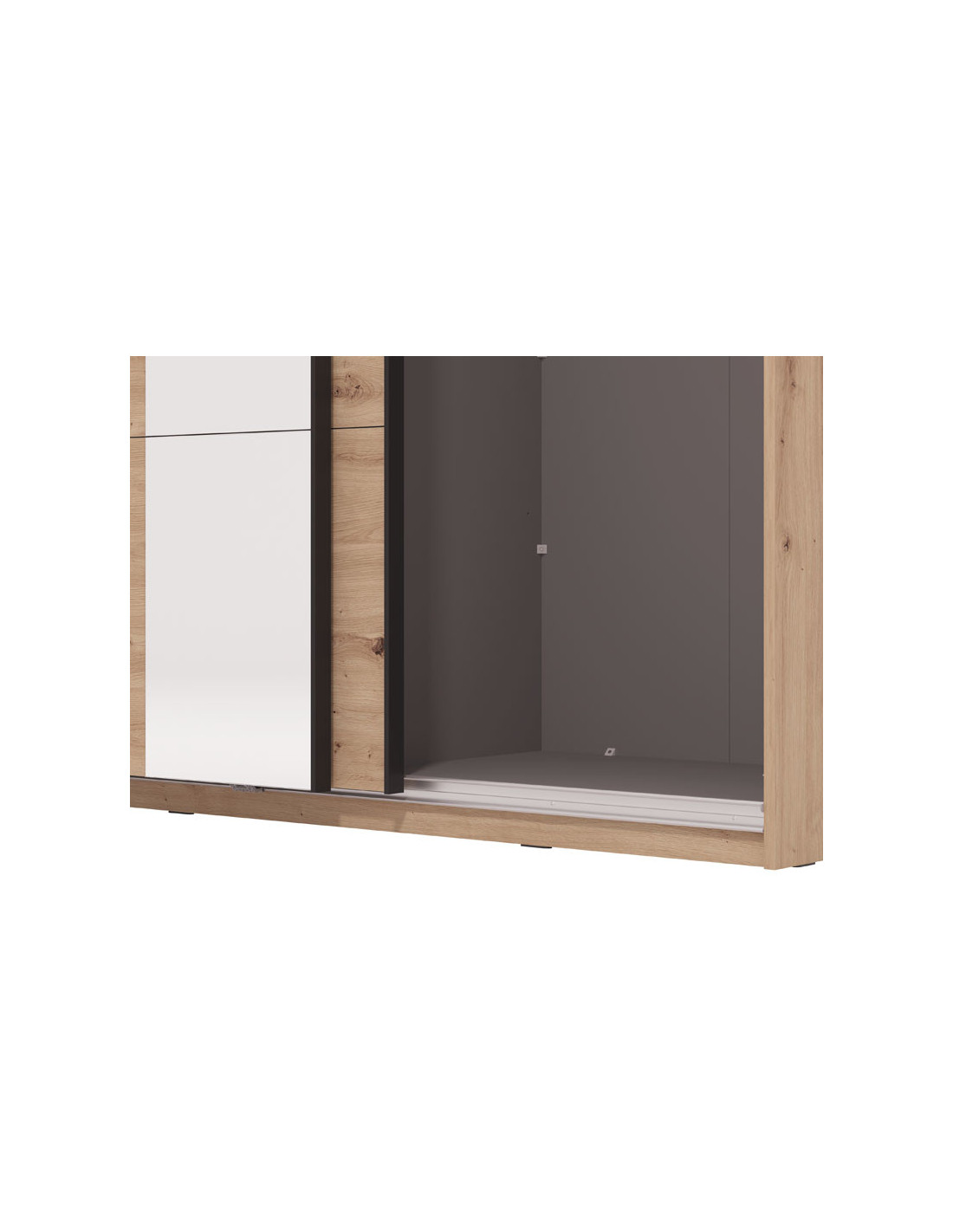 Model ormara GARD 150 OG h217 u dekoru artisan hrasta obećava praktičnost interijera i maksimalno iskorištenje prostora. Korisni prostor ovog modela sastoji se od šipki za ormar i praktičnih polica u lijevom i desnom dijelu. Ima mogućnost dodavanja seta polica i ugradnje usporivača za klizna vrata.