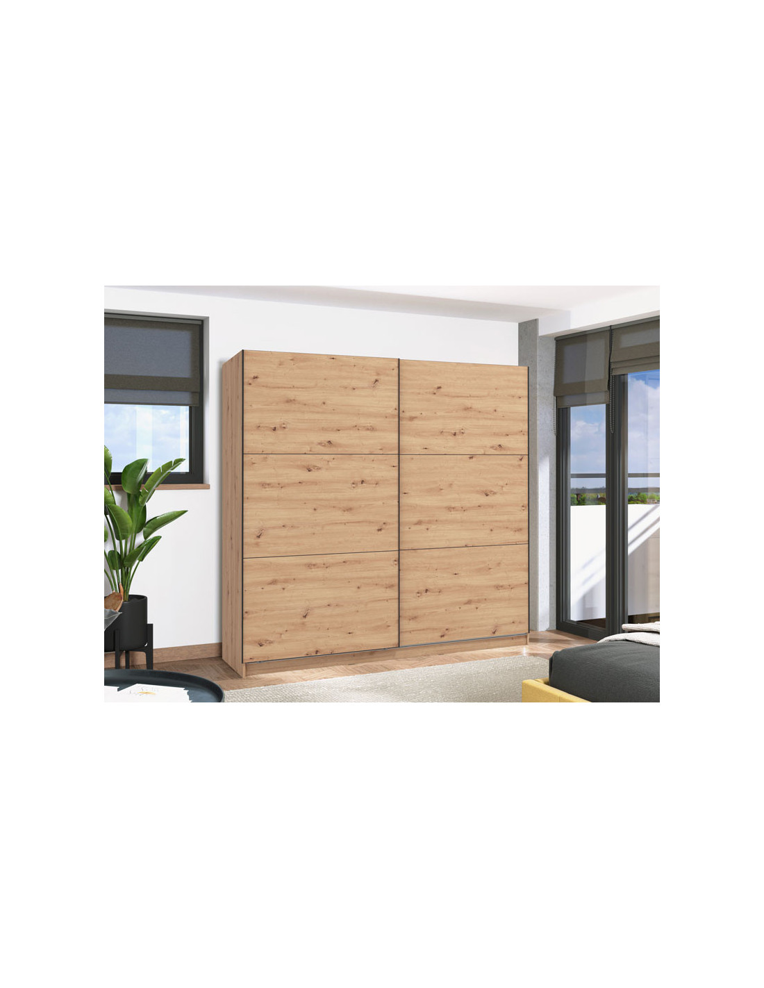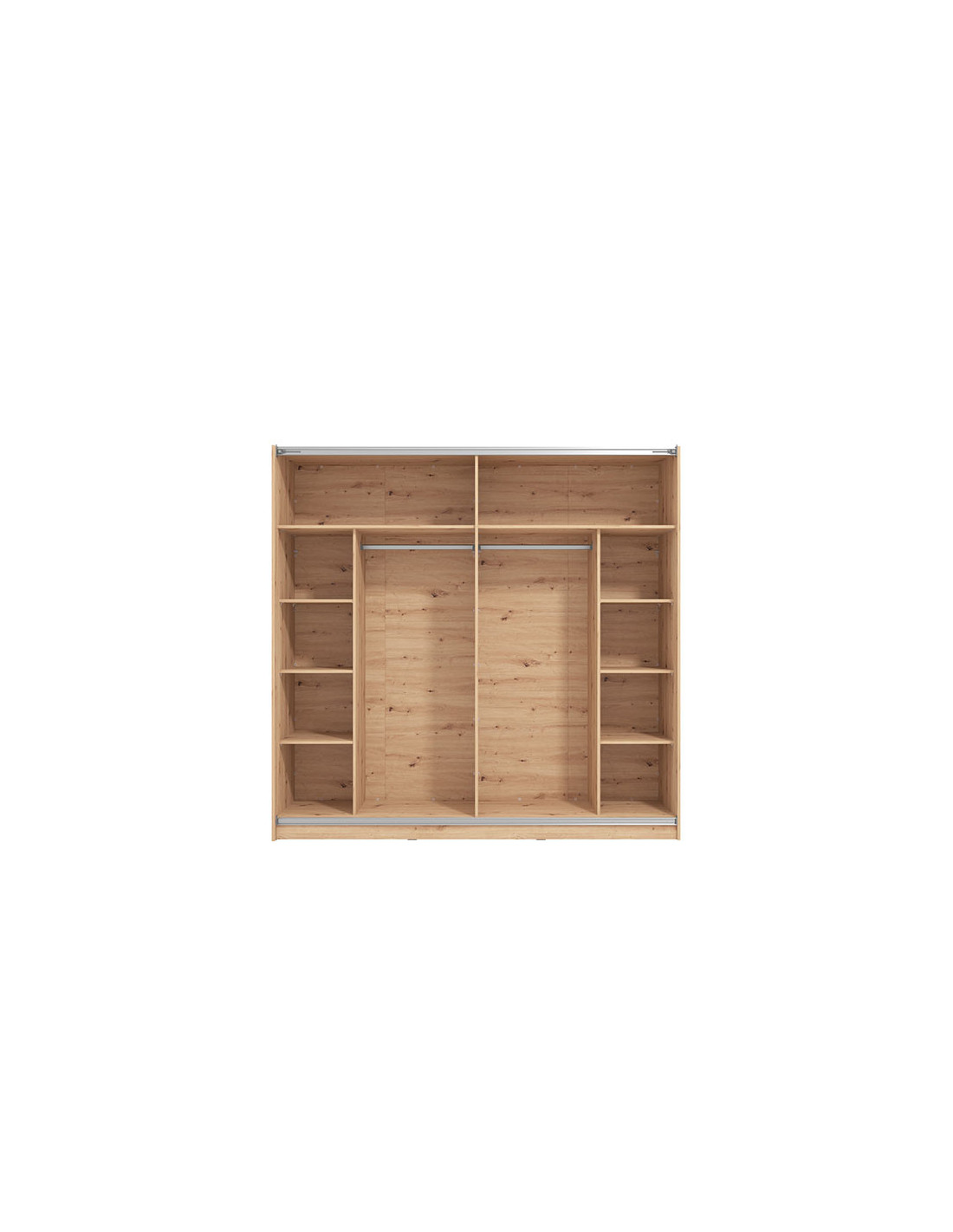 Ormar SIERRA 220 u dekoru artisan hrasta, model je ormara suvremenog dizajna i velike praktične uporabne vrijednosti. Unutrašnjost se sastoji od segmenta s policama u lijevom i desnom dijelu, kao i segmenta s garderobnom šipkom u središnjem dijelu. Posebna prednost ovog modela je klizni mehanizam koji doprinosi ekonomičnoj organizaciji raspoloživog prostora. Ima mogućnost ugradnje usporivača u klizni mehanizam, što dodatno doprinosi sigurnosti i funkcionalnosti.