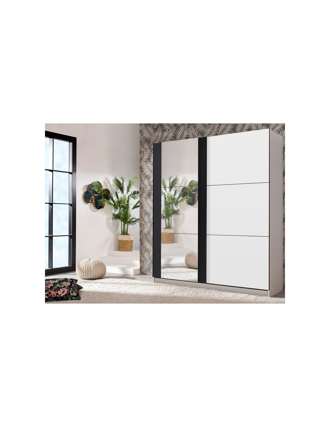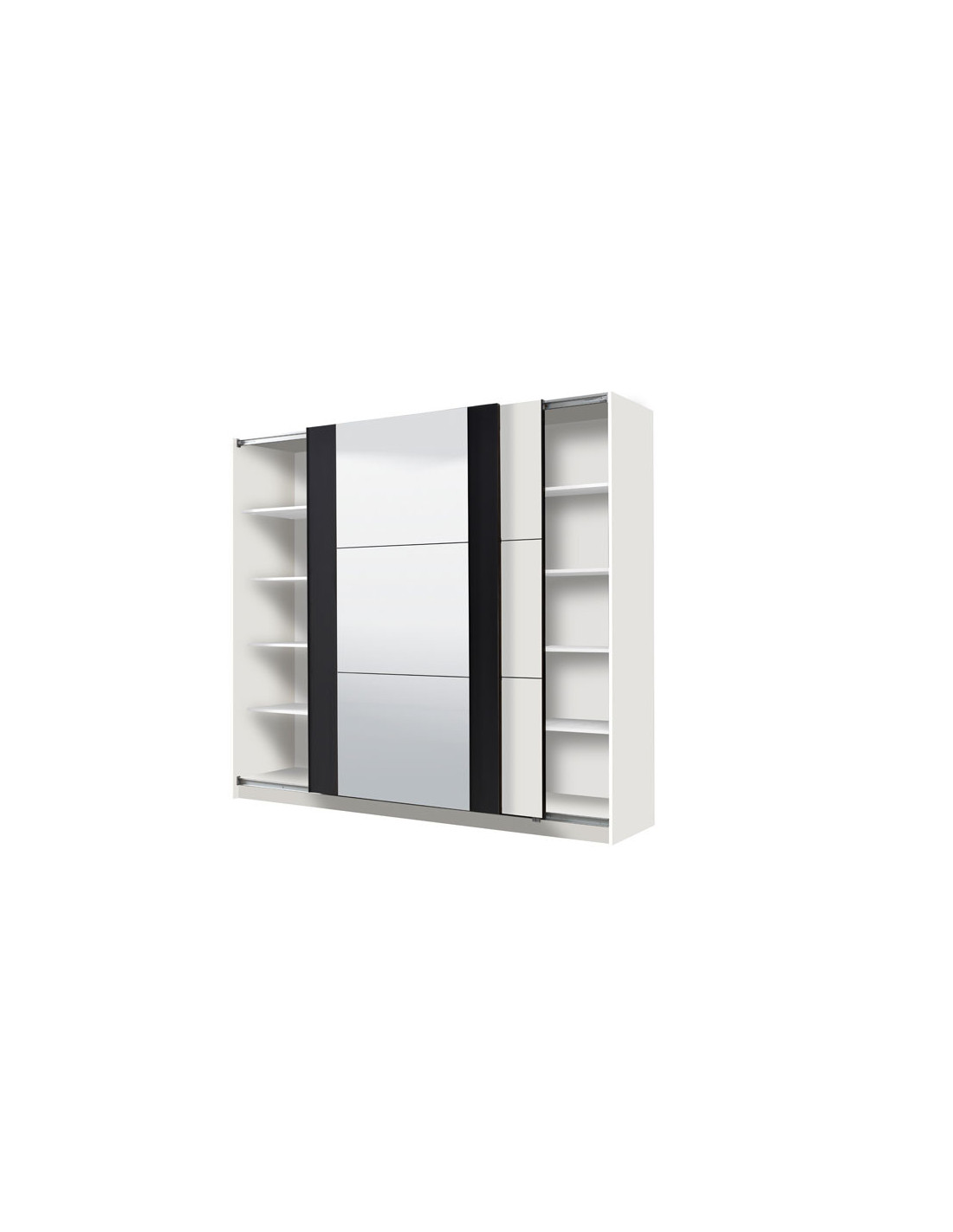 Ormar SICILIA 220 OG, u kombinaciji tamnobijelog i crnog dekora, model je ormara suvremenog dizajna i velike praktične vrijednosti. Unutrašnjost se sastoji od segmenta s policama u lijevom i desnom dijelu, kao i segmenta s garderobnom šipkom u središnjem dijelu. Posebna pogodnost ovog modela je klizni mehanizam koji doprinosi ekonomičnoj organizaciji raspoloživog prostora, kao i ogledalo na lijevom kliznom elementu. Ima mogućnost ugradnje usporivača u klizni mehanizam, što dodatno doprinosi sigurnosti i funkcionalnosti.