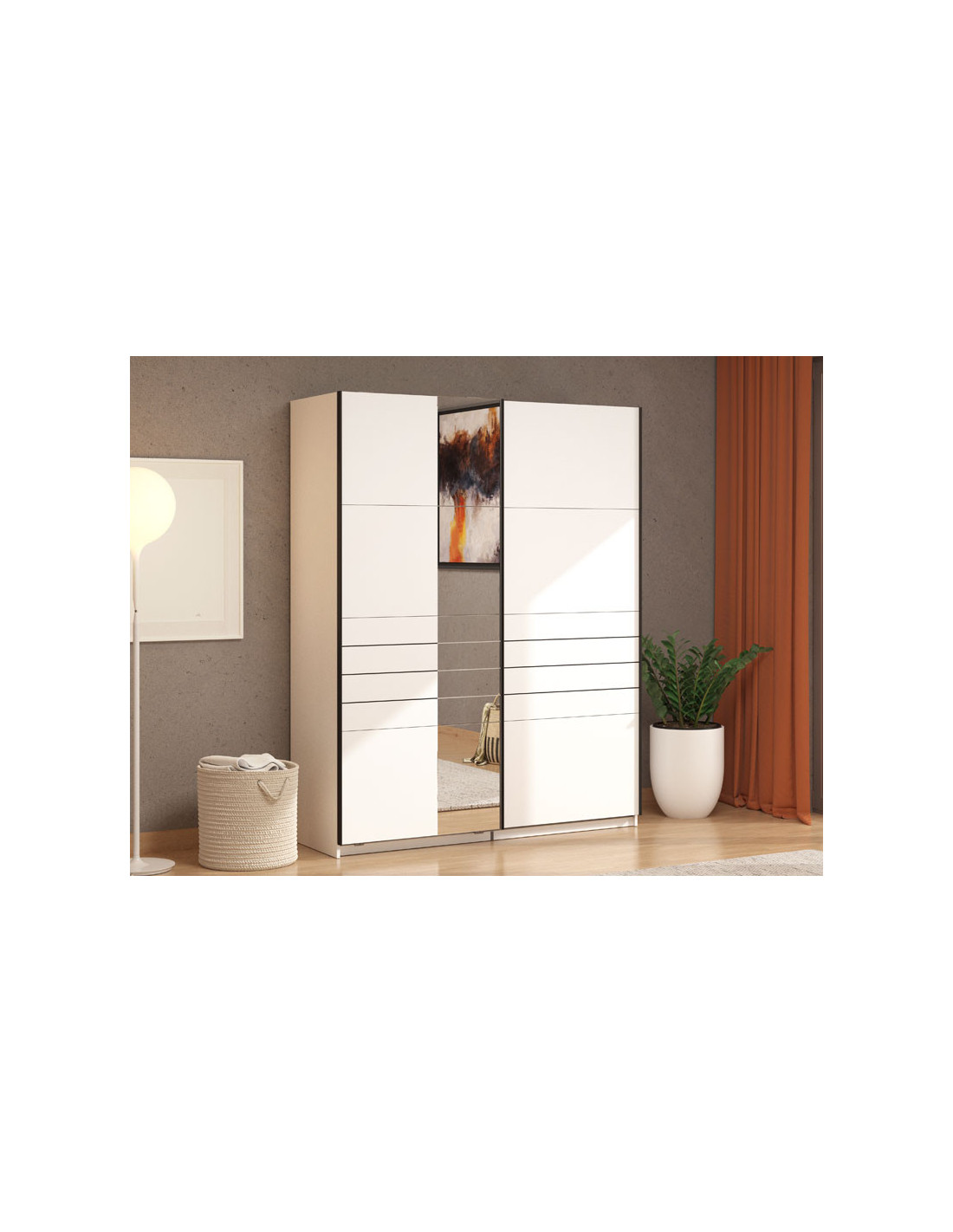 Ormar VEYMONT 150 OG h217 s kliznim vratima, u bijeloj boji i segmentom s ogledalom na lijevoj prednjoj strani, doprinosi funkcionalnosti i estetici interijera. Dio kolekcije ormara VEYMONT elegantno je i vrlo atraktivno dizajnersko rješenje, čija izražena estetika doprinosi cjelokupnom ambijentalnom dojmu. Korisni prostor ovog modela sastoji se od šipki za ormar i po jedne praktične police s lijeve i desne strane. Ima mogućnost dodavanja seta polica prikladnih za ovaj model ormara, kao i mogućnost ugradnje usporivača za klizna vrata.