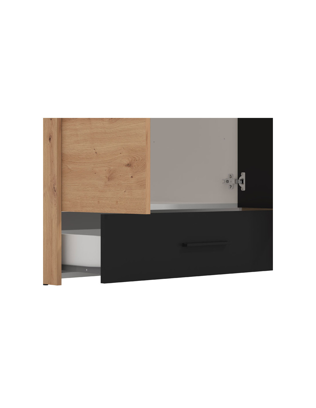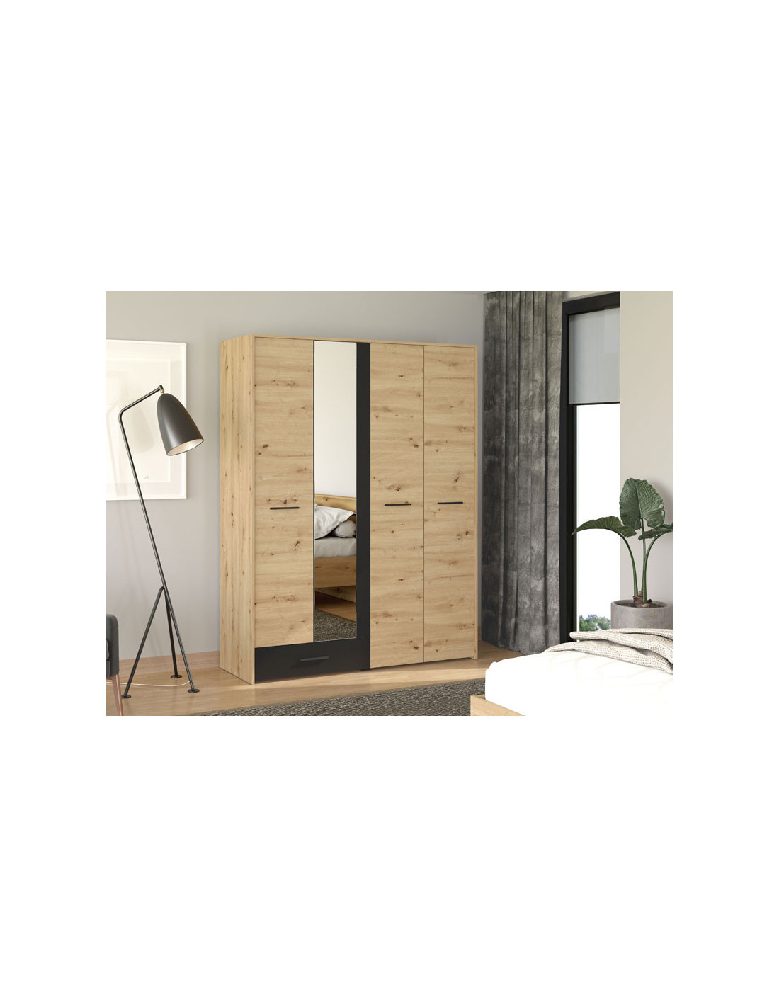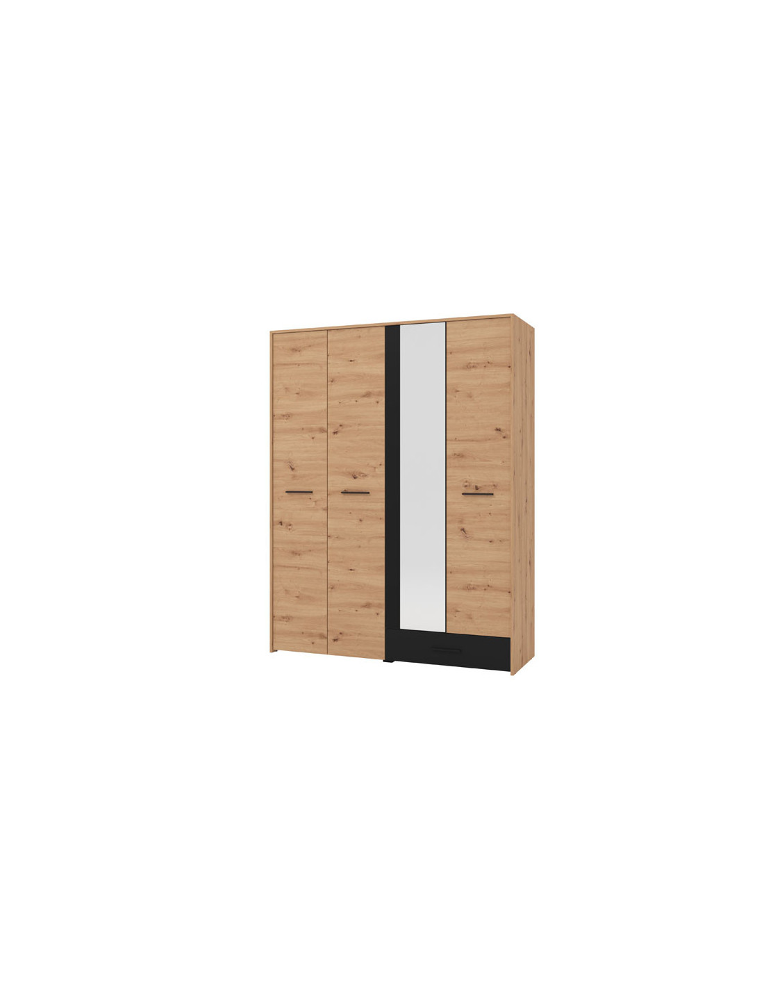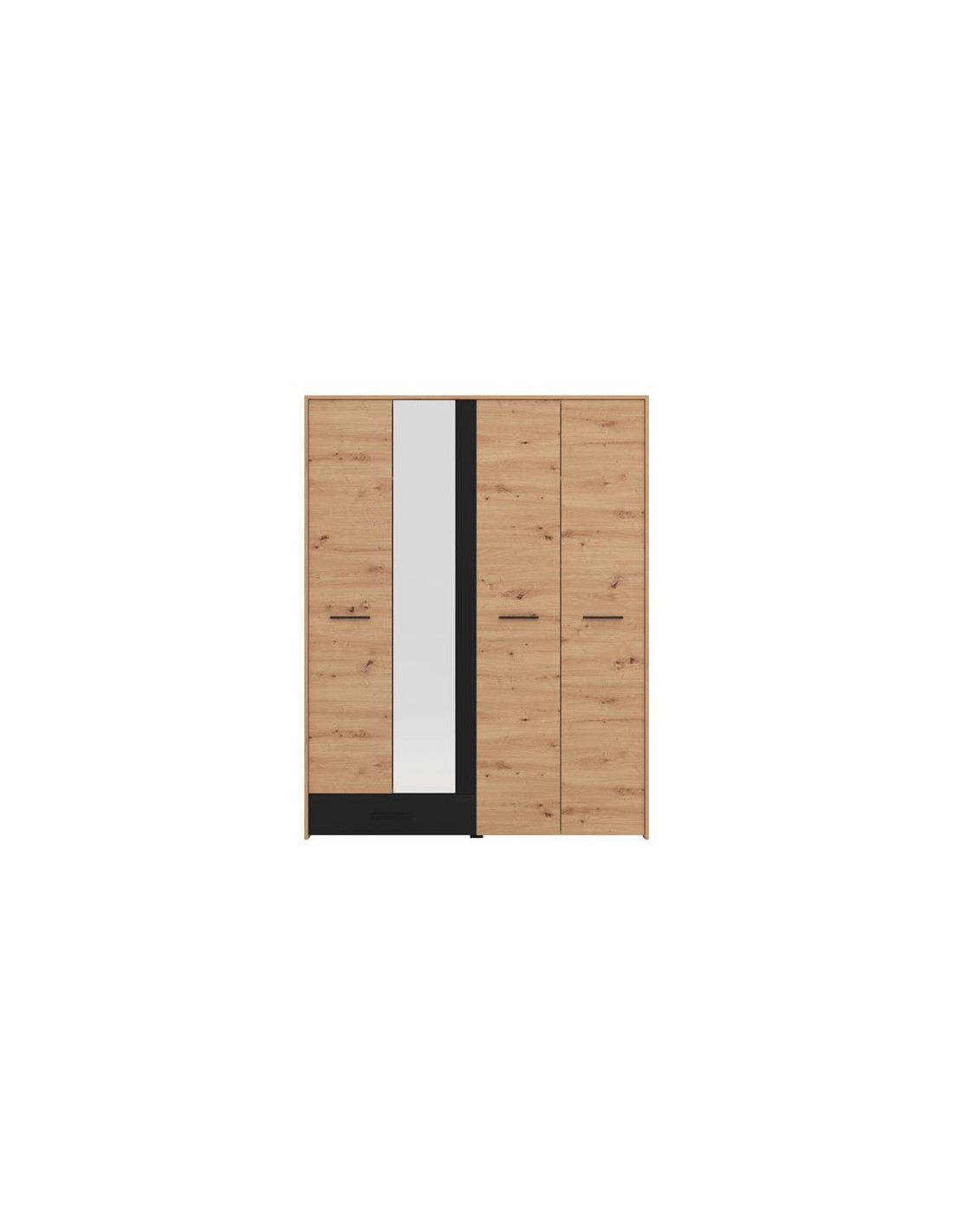Ormar VARADERO 4K1F1O, u dekoru artisan hrasta i crne boje, dio je istoimene kolekcije elemenata za spavaću sobu. Ima vrlo funkcionalan iskoristiv prostor sa sustavom polica, kao i dio s garderobnom šipkom i standardnom policom iznad nje. Dodatna estetska pogodnost je ogledalo u središnjem dijelu.