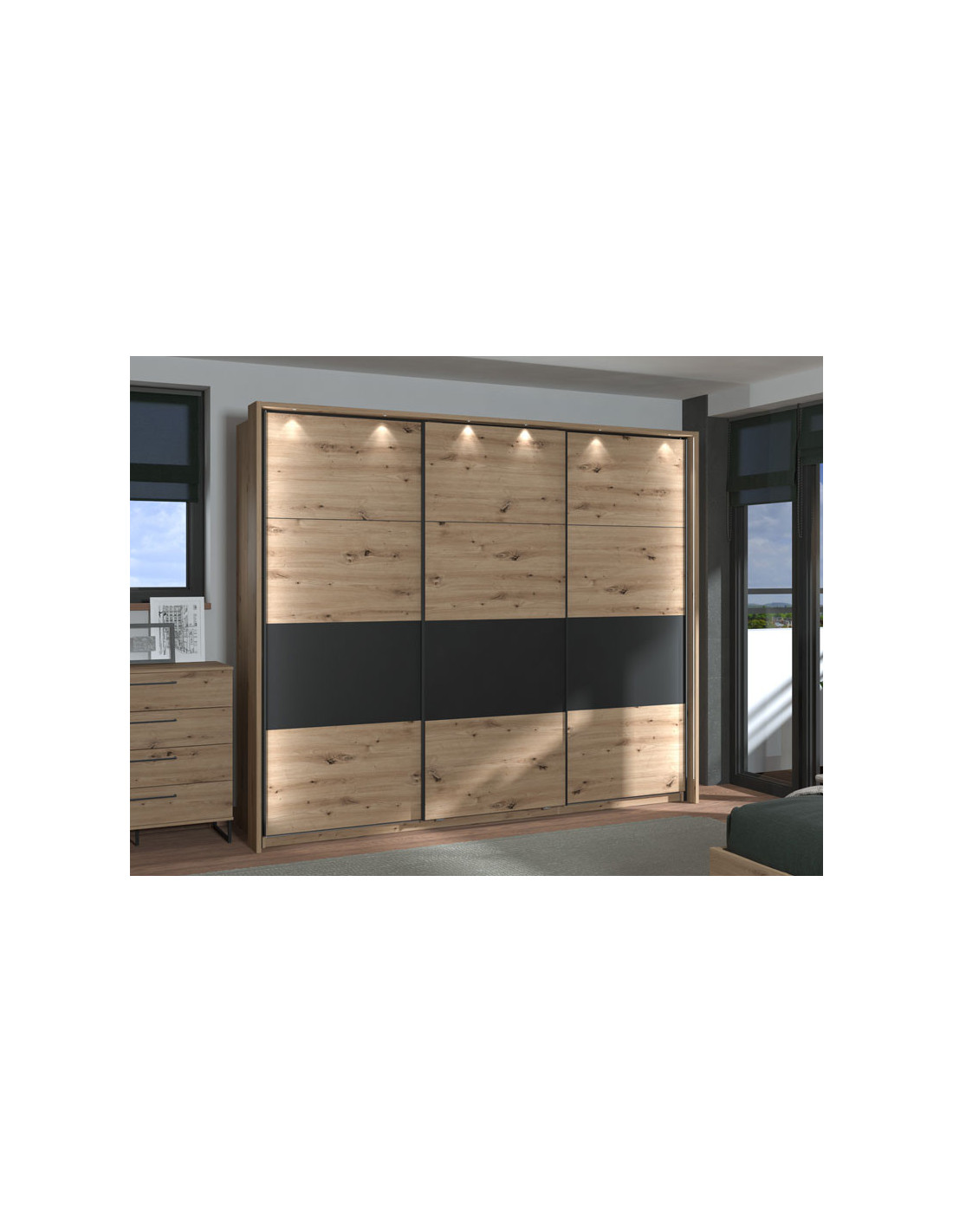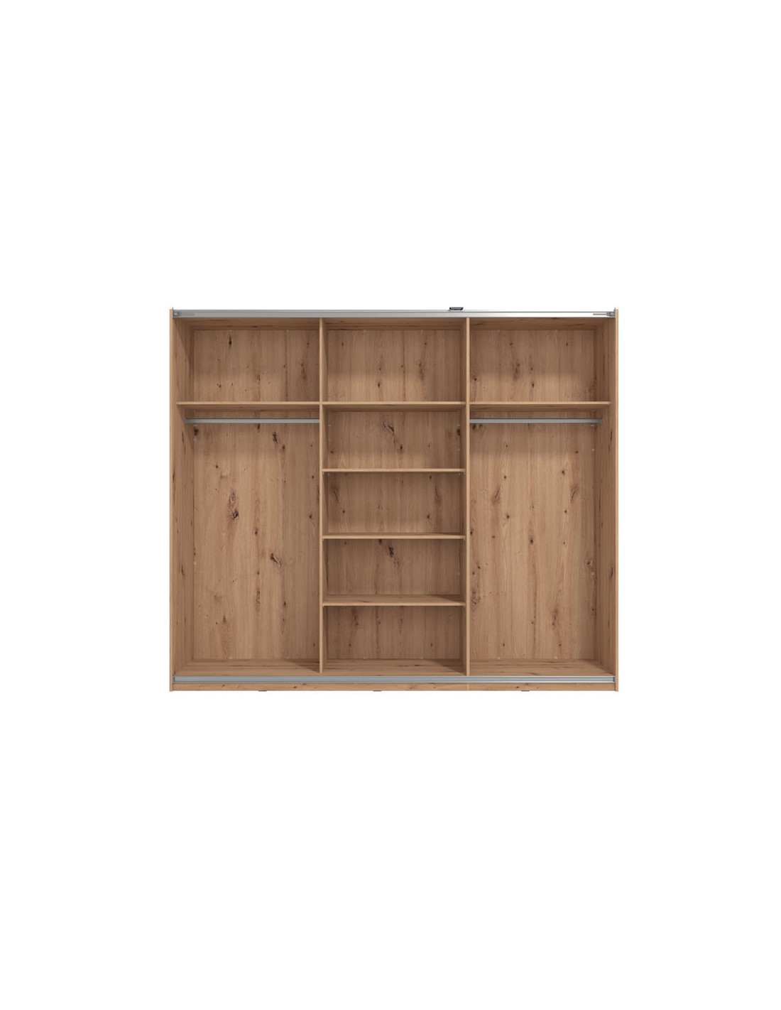 Model kliznog dvokrilnog ormara SARDINIA 270, u kombinaciji dekora artisan hrasta i crne boje, spoj je prirodne i rustikalne topline s industrijskim stilskim značajkama u uređenju interijera. Korisni prostor ovog modela sastoji se od polica u središnjem dijelu i dvije šipke za ormar u lijevom i desnom dijelu. Pripada istoimenoj kolekciji SARDINIA, čiji elementi zaokružuju cijeli interijer kada je u pitanju opremanje spavaće sobe. Postoji mogućnost ugradnje usporivača kliznog mehanizma, kao i dodatne LED rasvjete.
